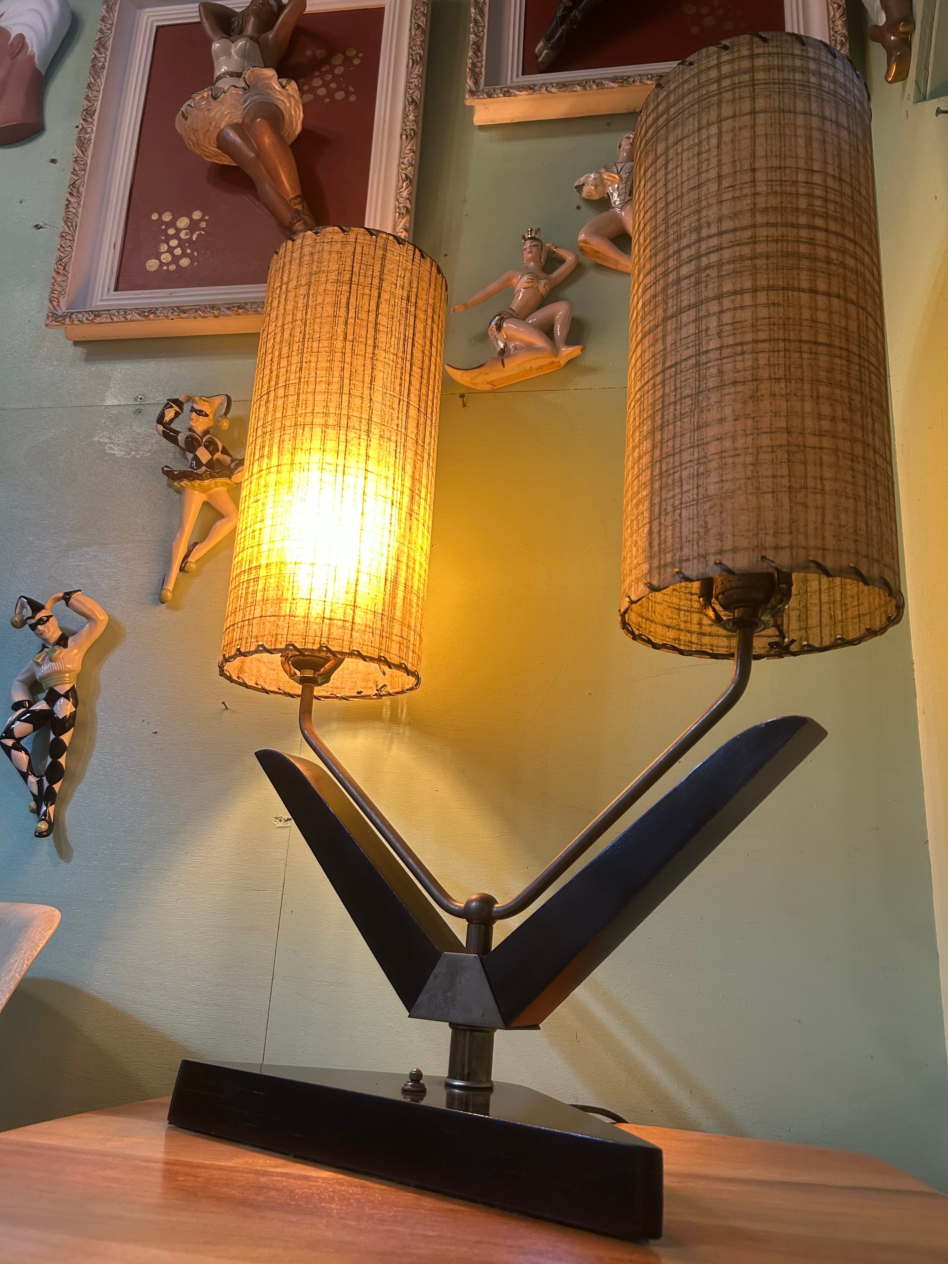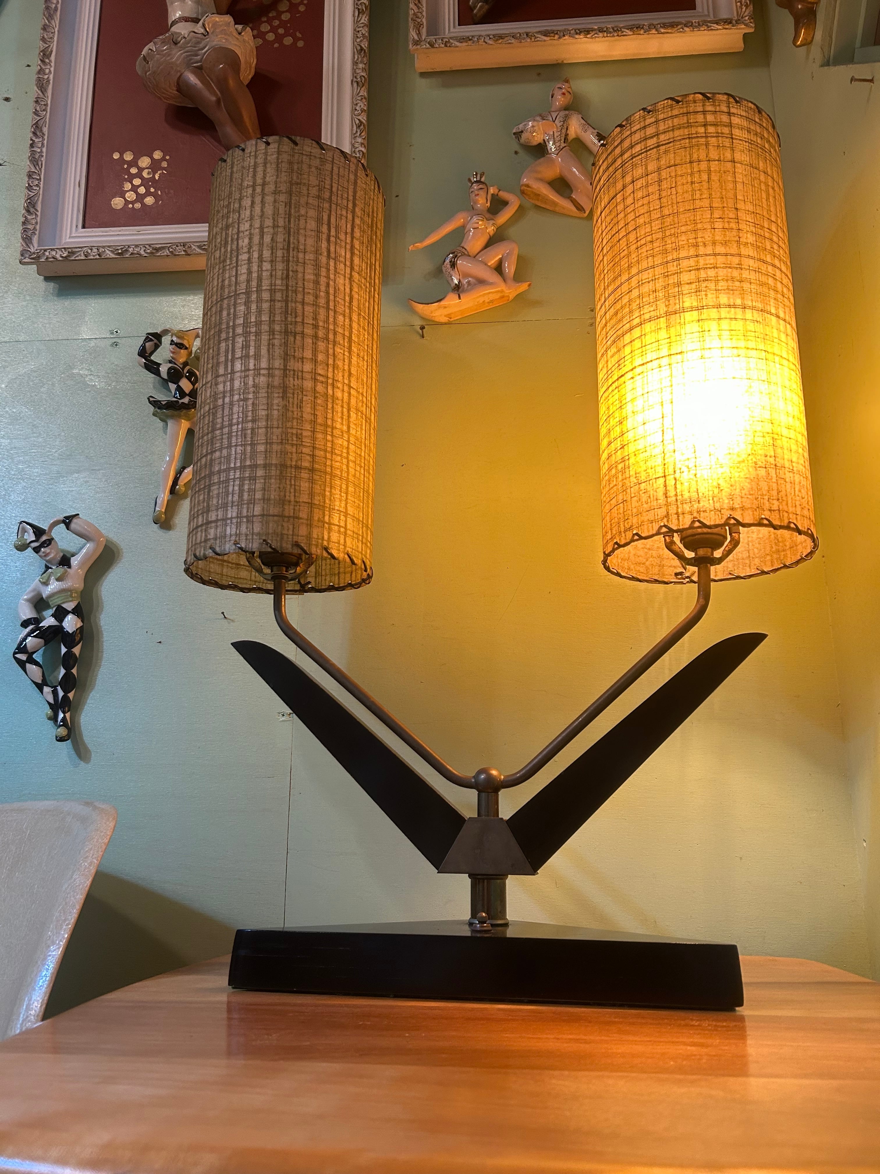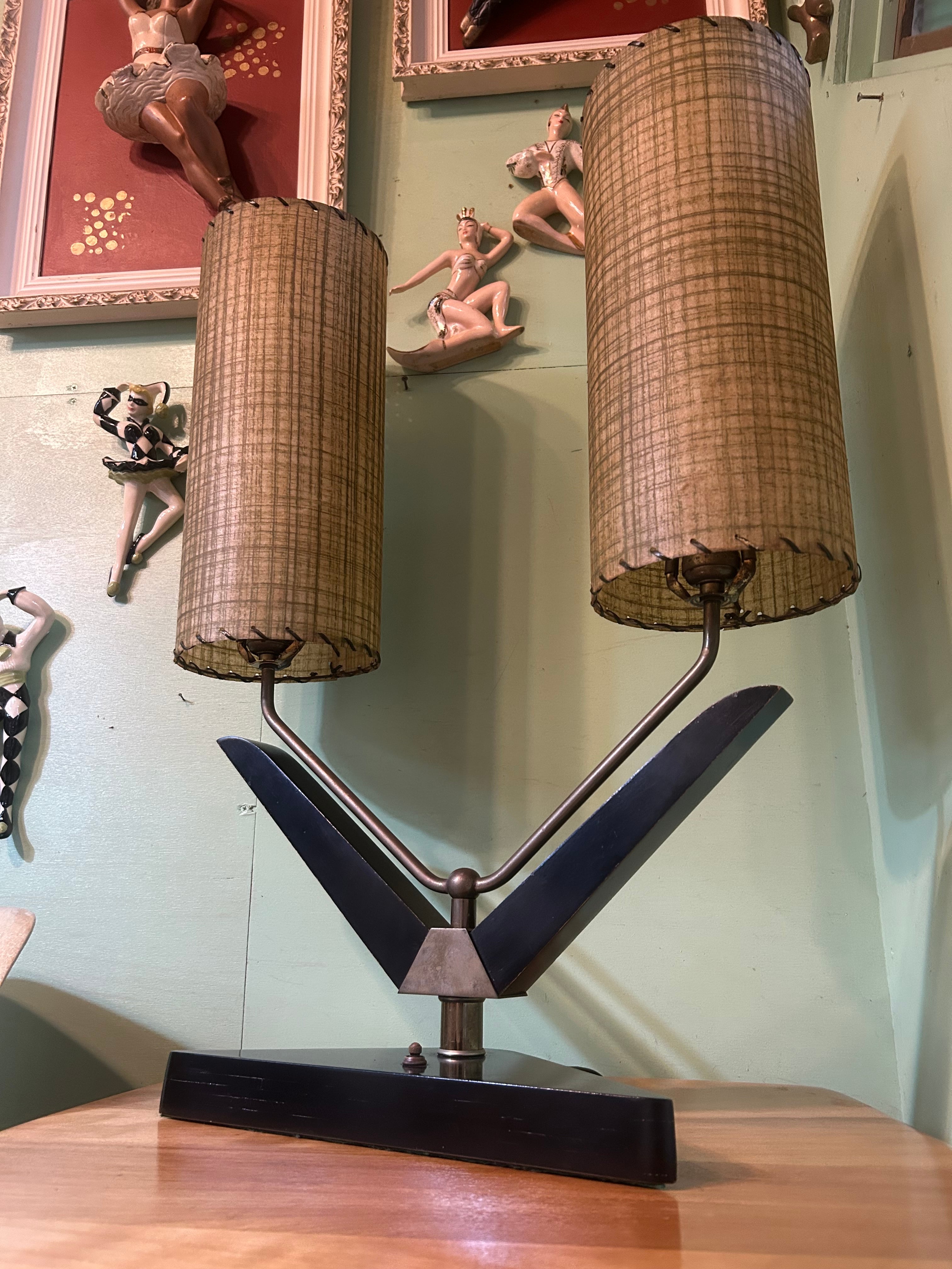 1950年代、majestic lamp社製アトミックデザインのダブルシェードランプ。 サイズ H660×W500×D140