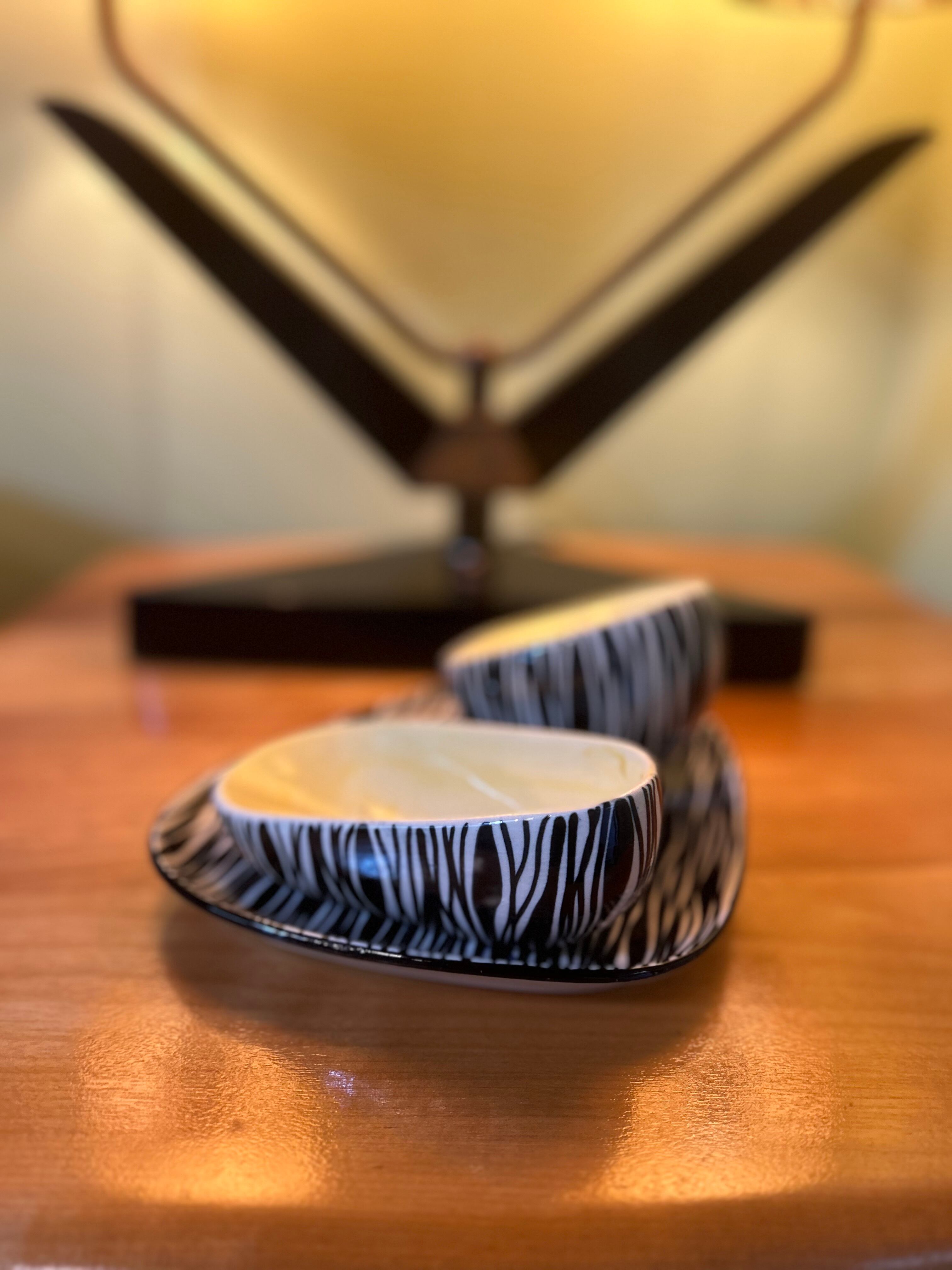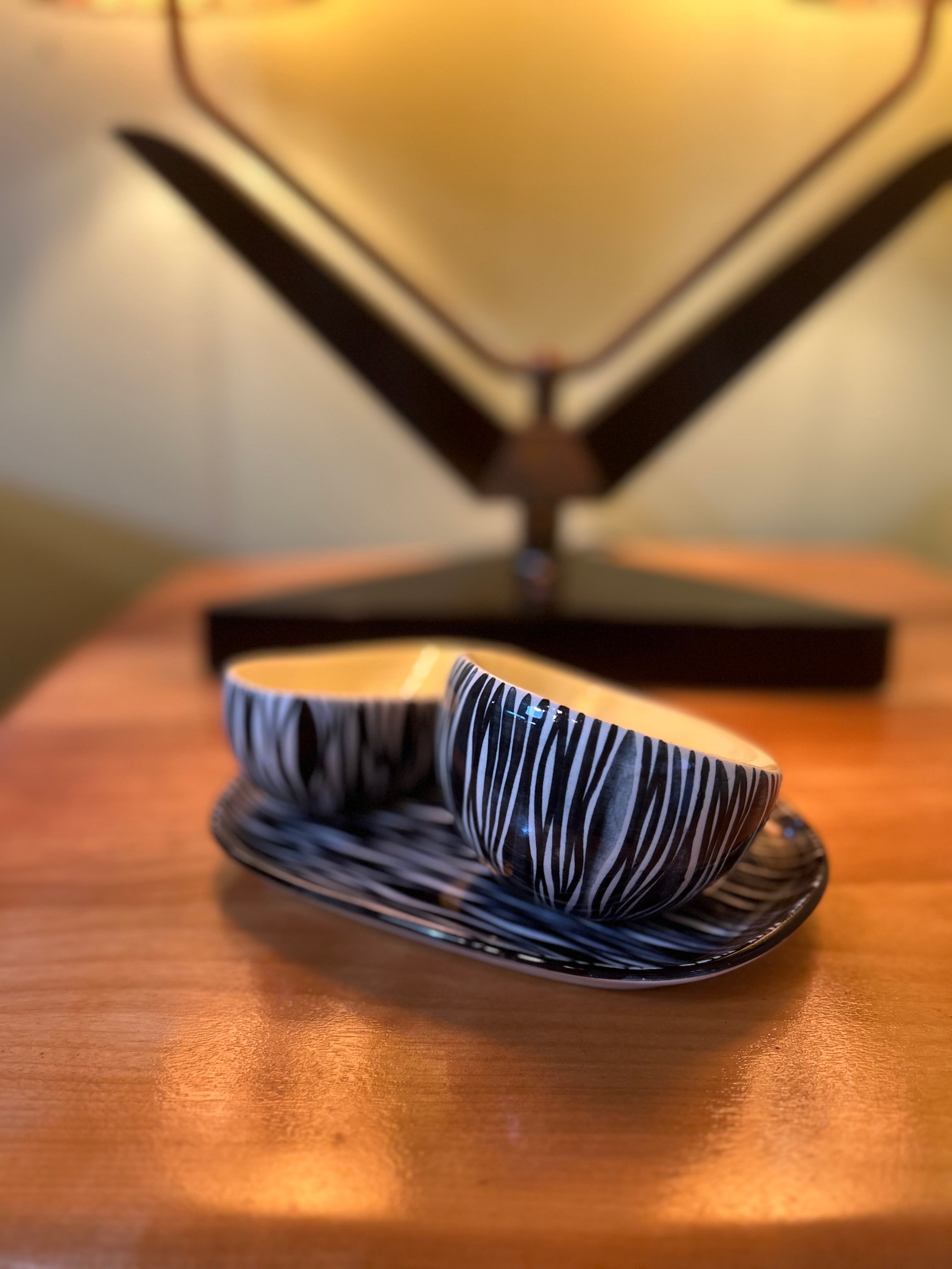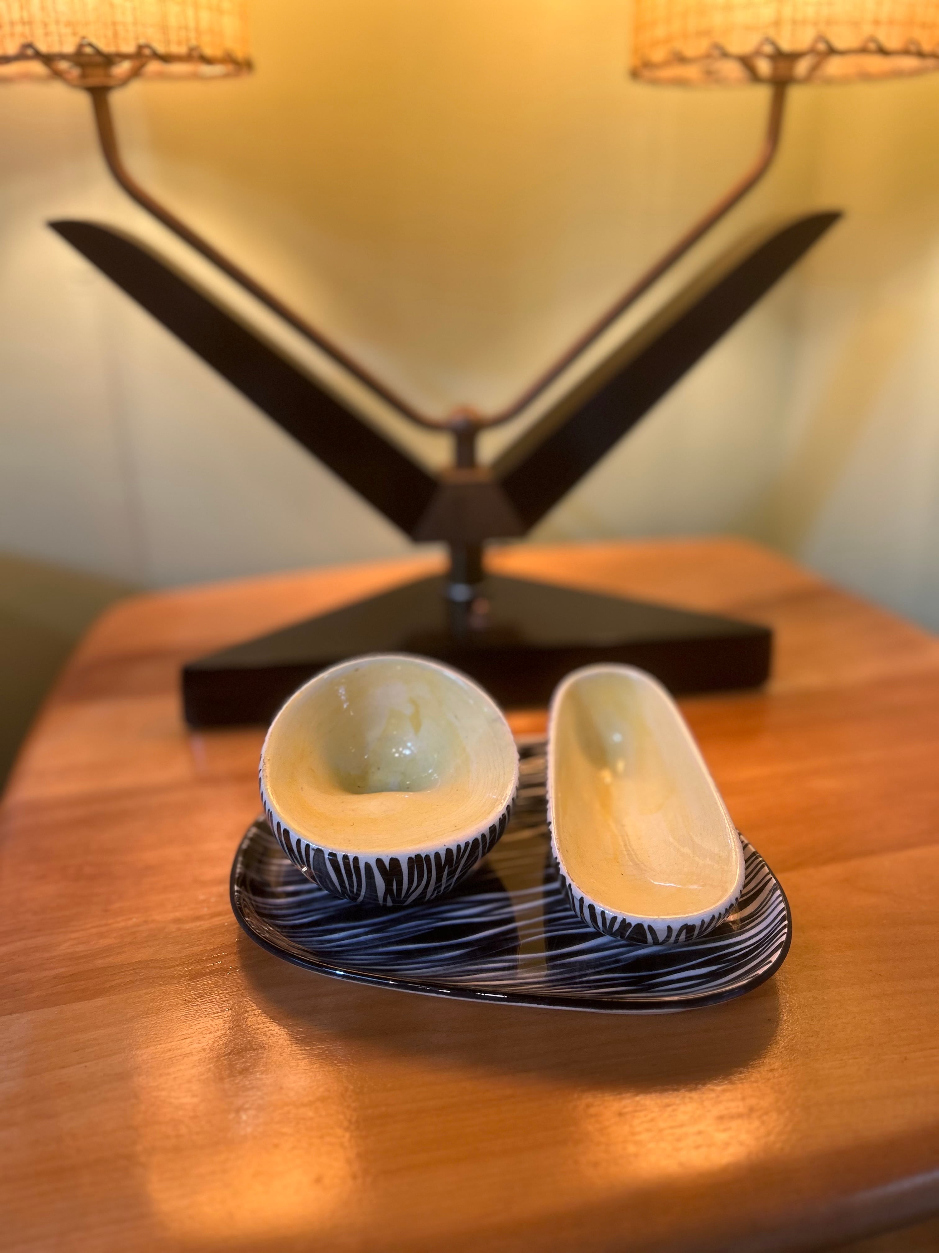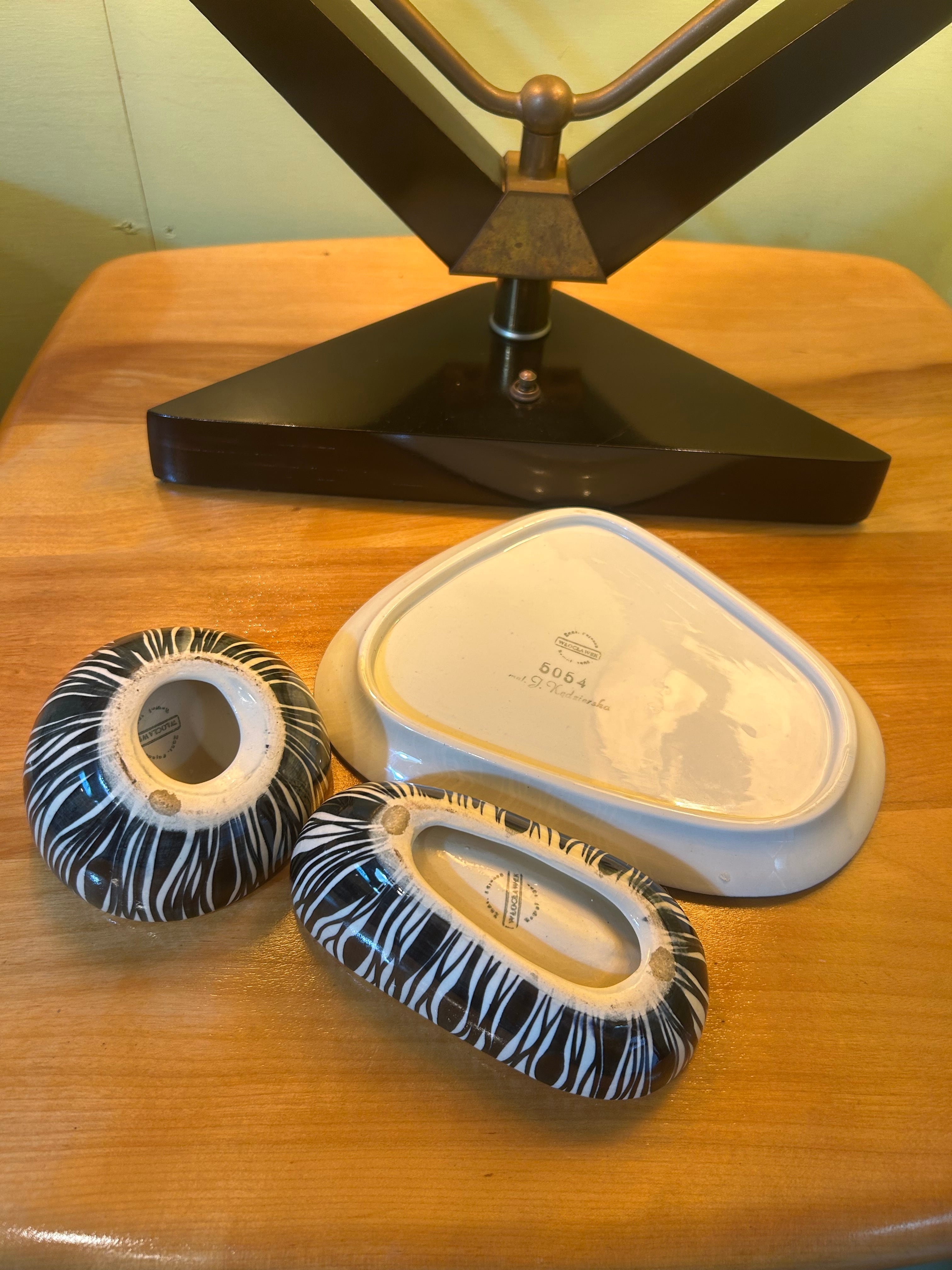 1950〜1960年代、ポーランド製(WŁOCŁAWEK社製)のヴィンテージスモーキングトレイセット。 ゼブラ&イエローのカラーリングは絶妙です。 一つ一つ手作りで作られた一点物。 Artist ...J. Kędzierska