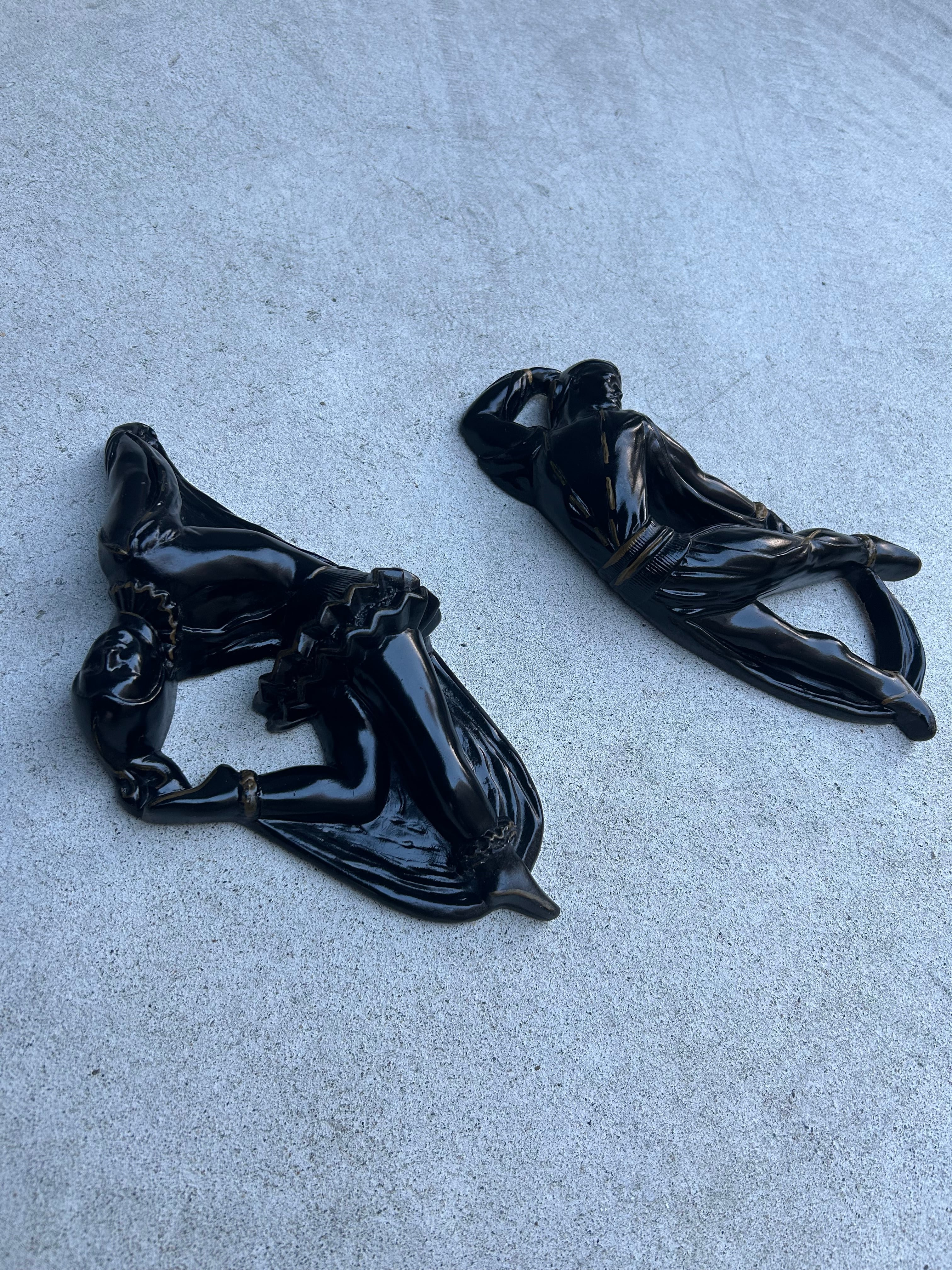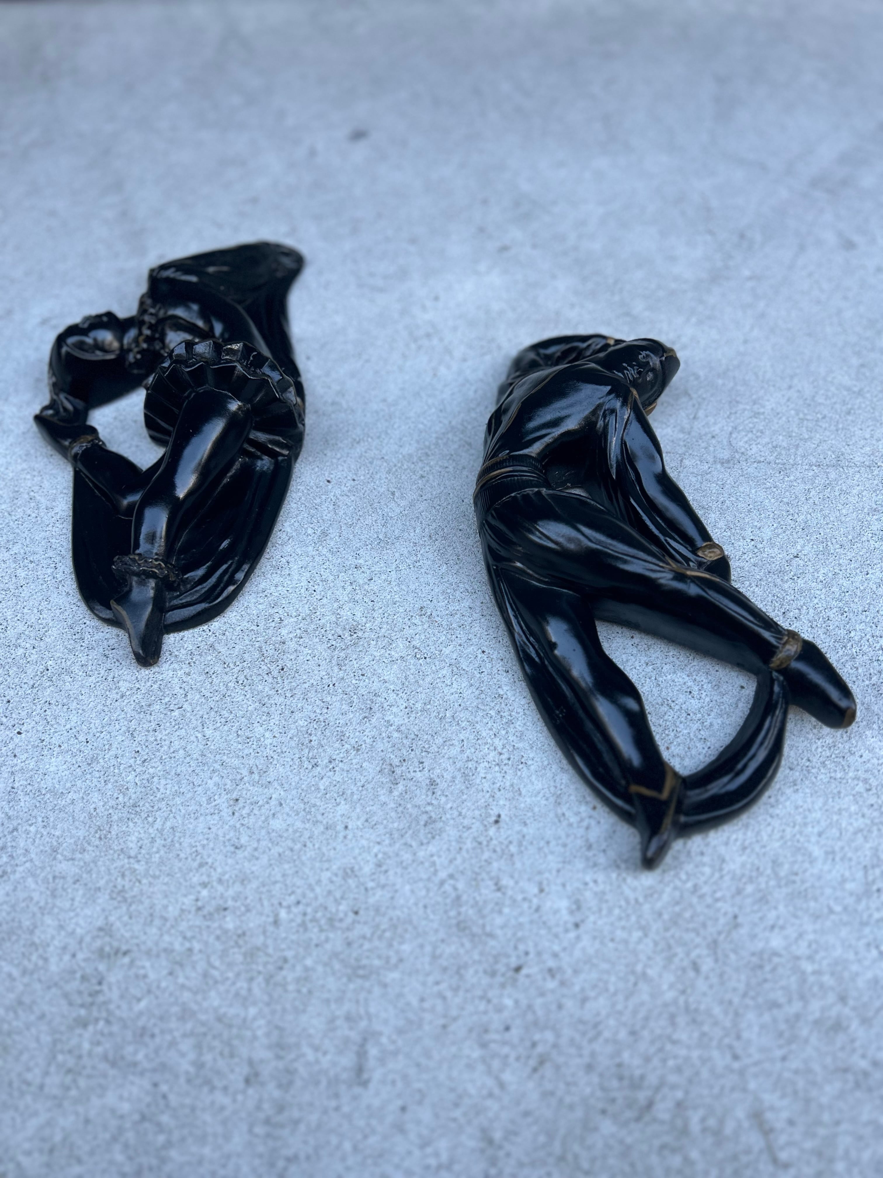 1950年代、ヴィンテージハーレクインの壁飾りペアー。 サイズ H325×W160 大きなダメージはありません。 目立たない程度の小さなカケやキズは多少ございます。