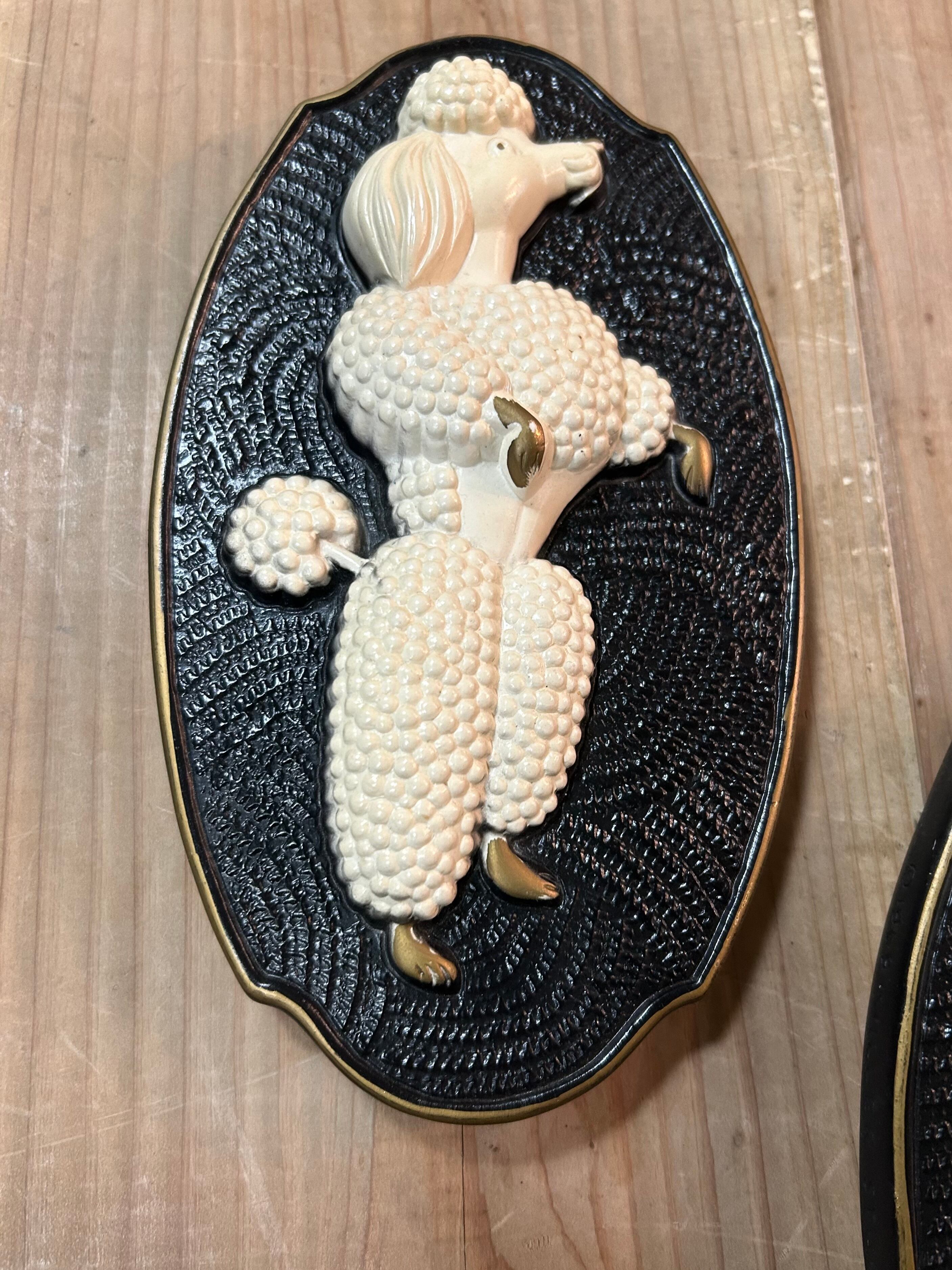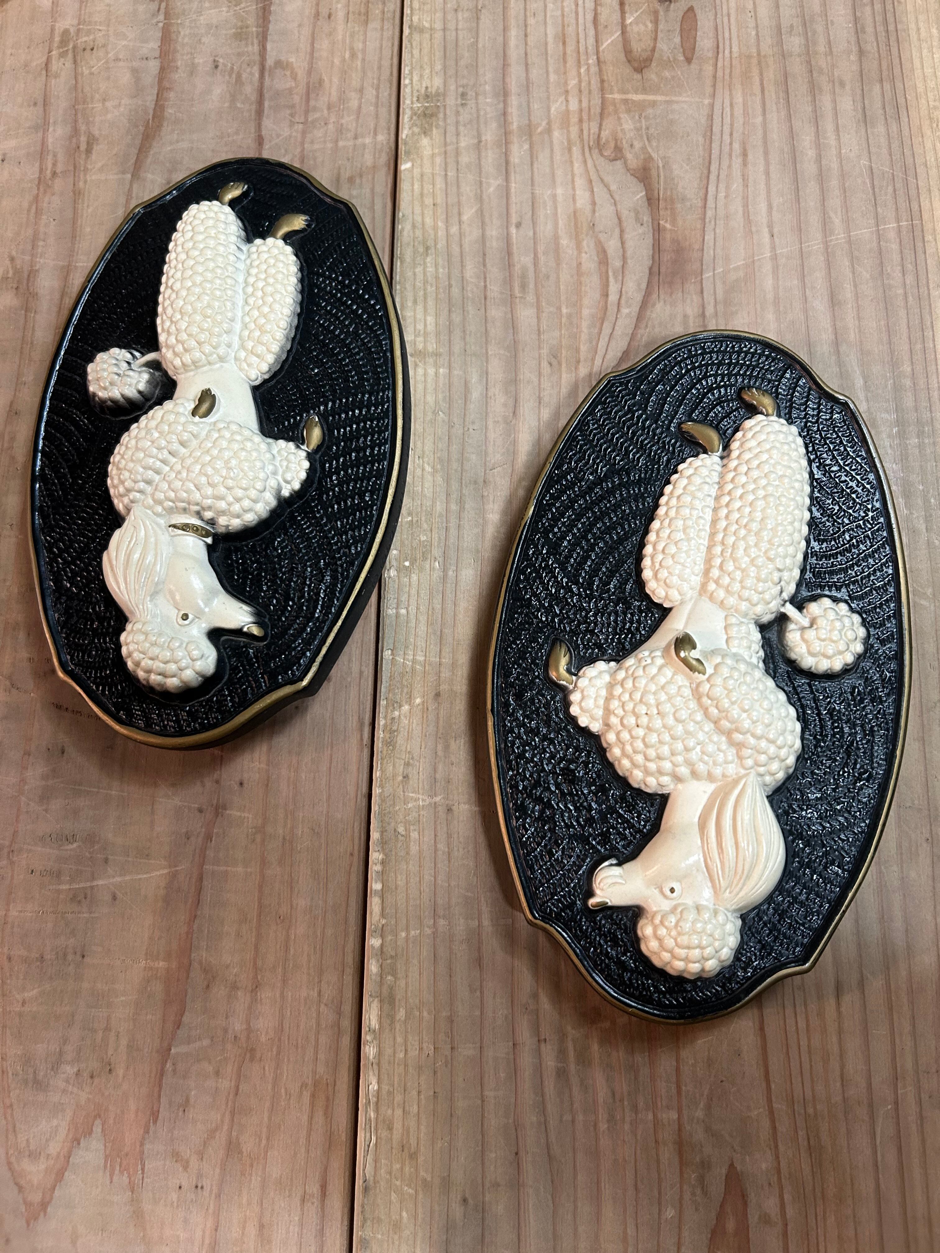 1969年、MILLER STUDIO製プードルの壁飾りペアー。 サイズ H203×W122 とても綺麗な状態ですが、裏側の壁に掛ける為に必要な針金部分の補修をしてあります。