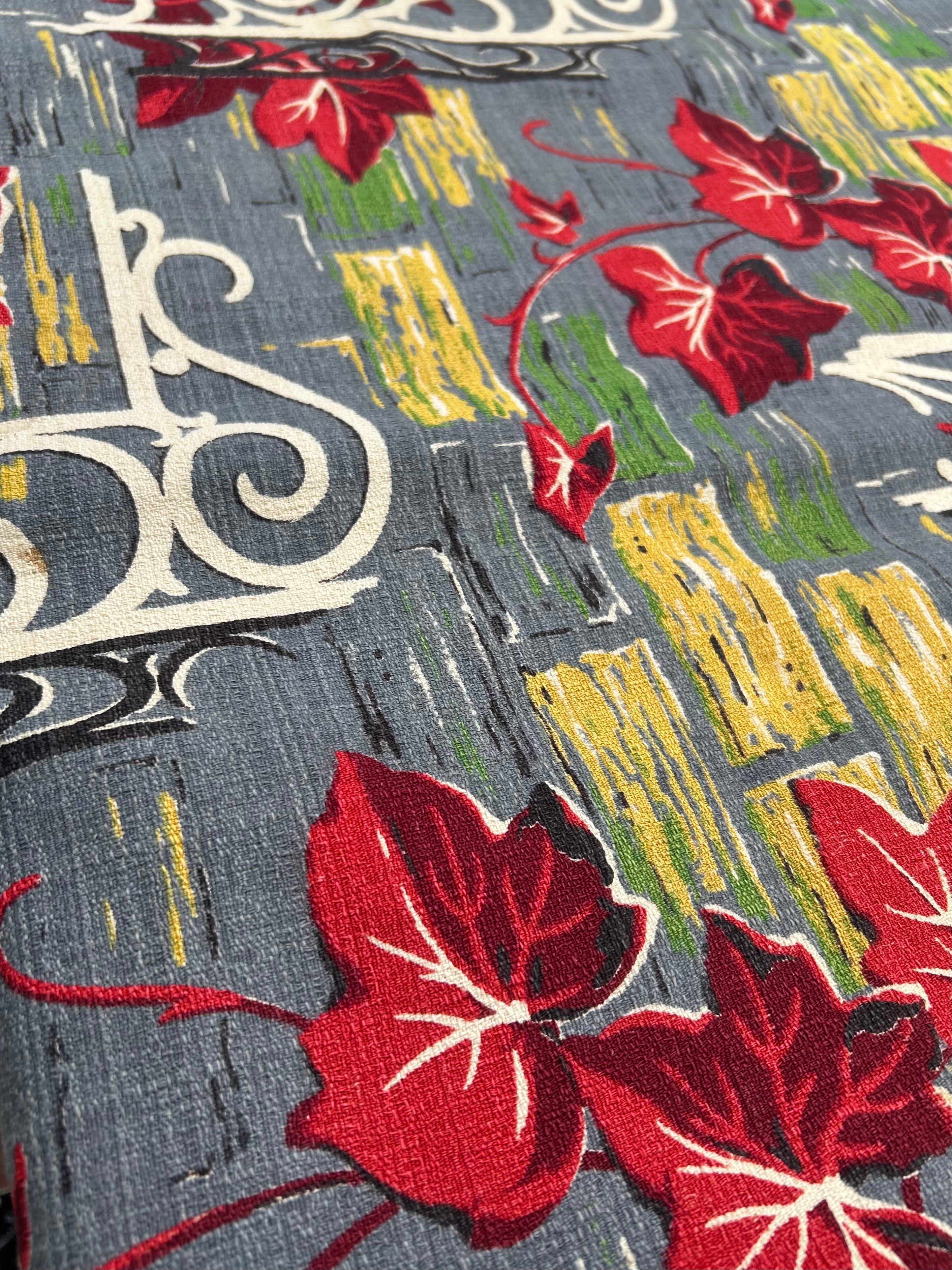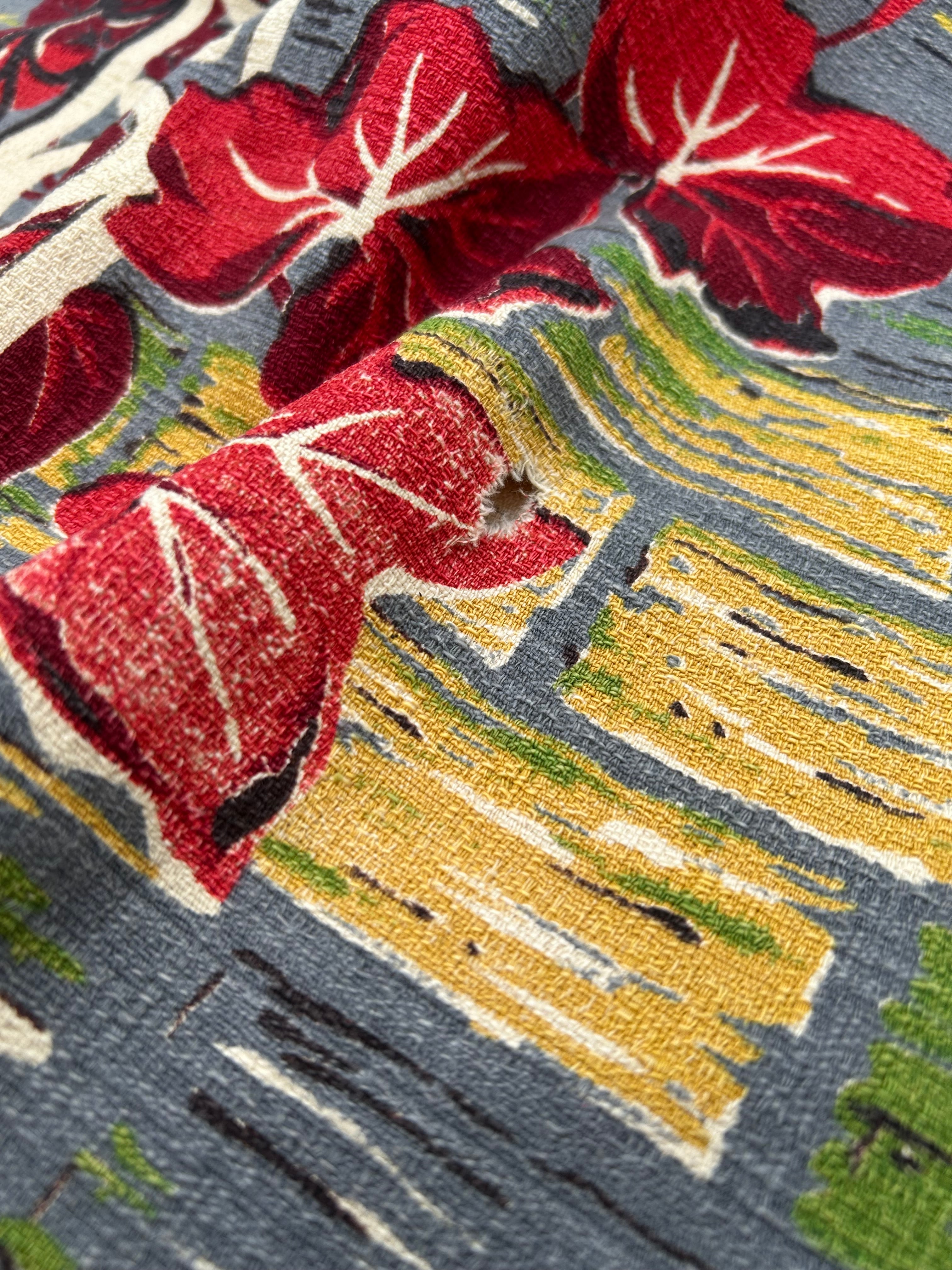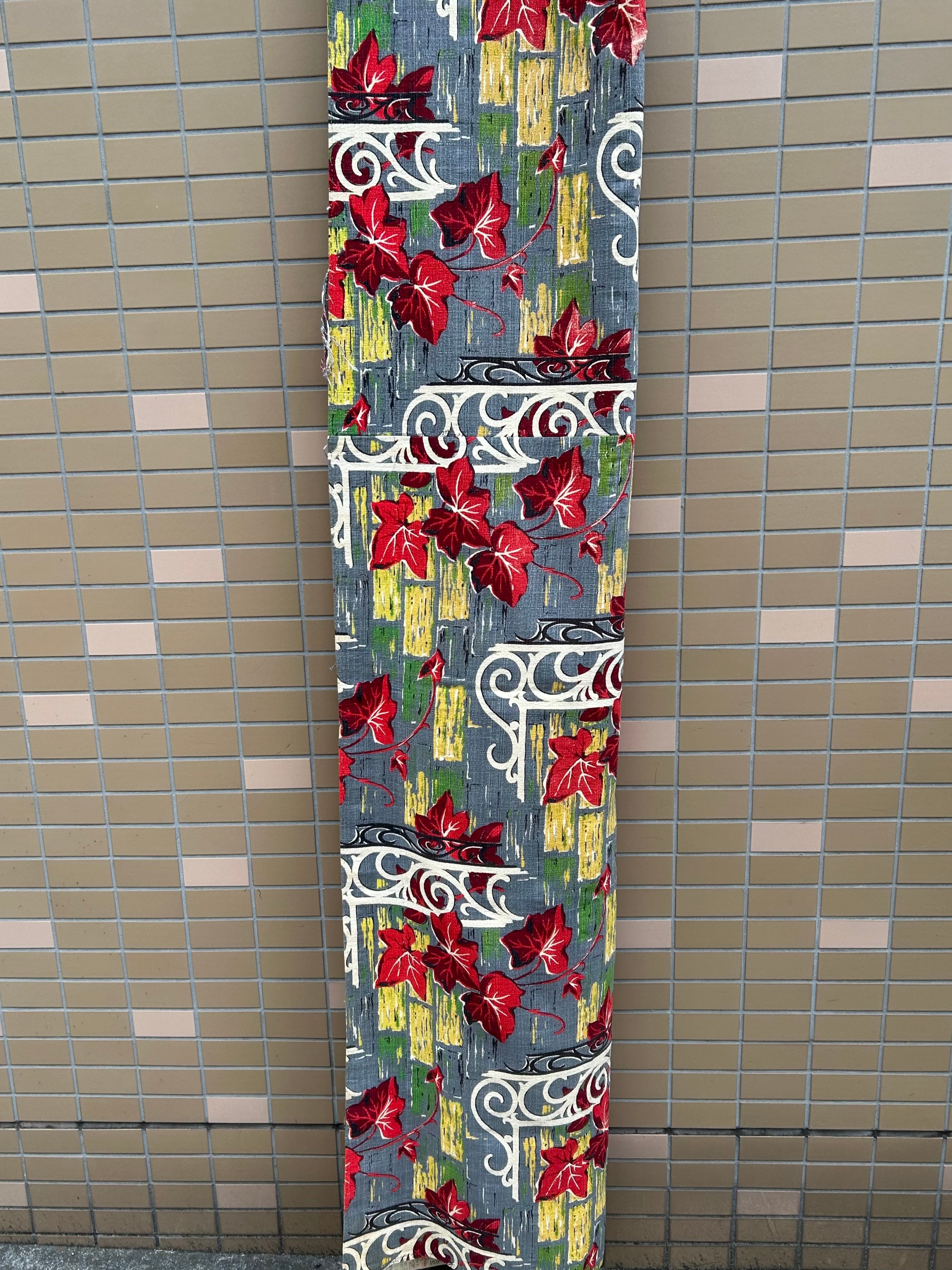 1950年代、リーフ柄ビンテージファブリック。 カーテンや椅子の張り替え、洋服などのリメイクにオススメ。 サイズ 740×2500 生地の擦れや小さな穴、裏面にシミなど多少ございます。