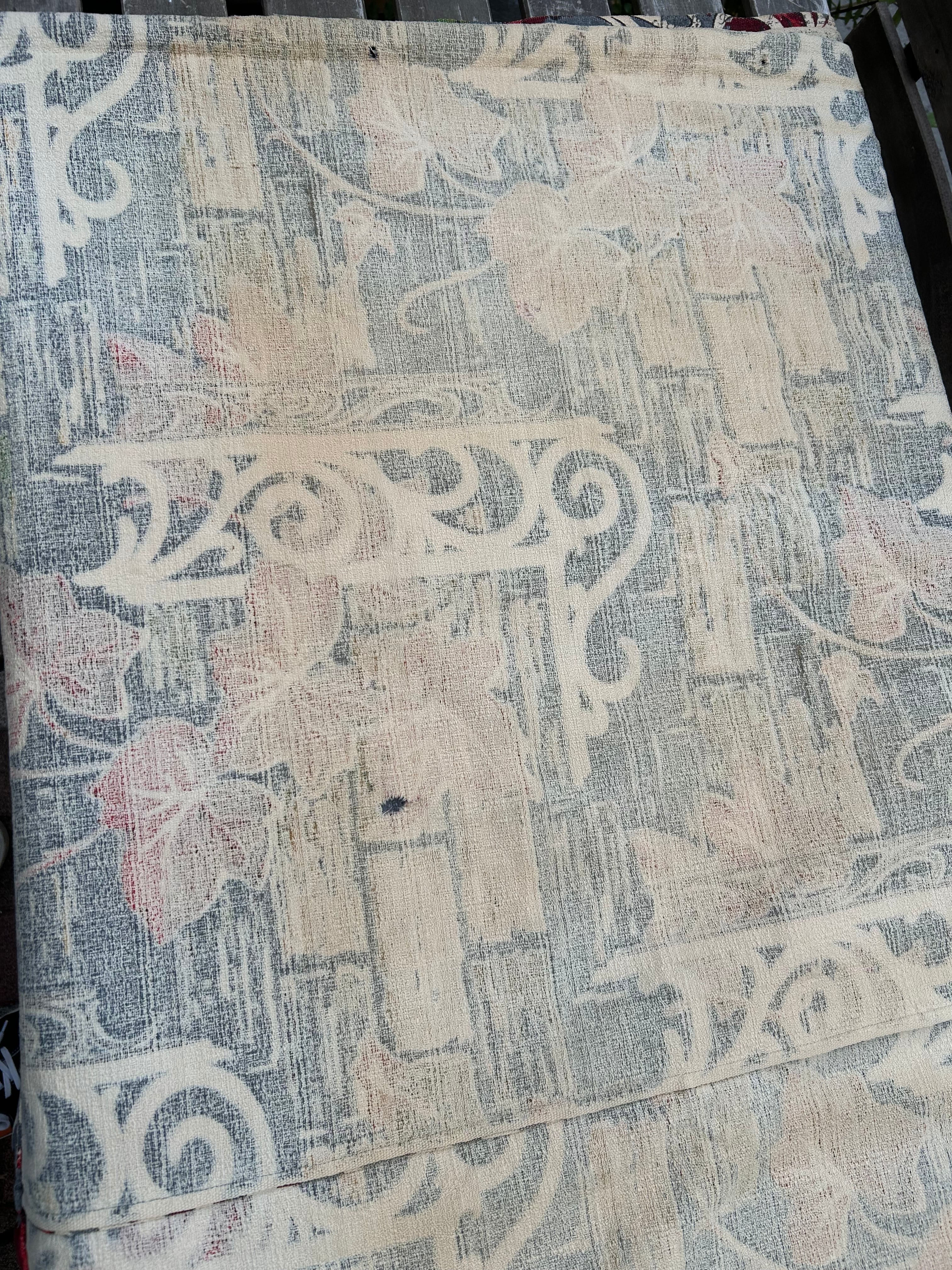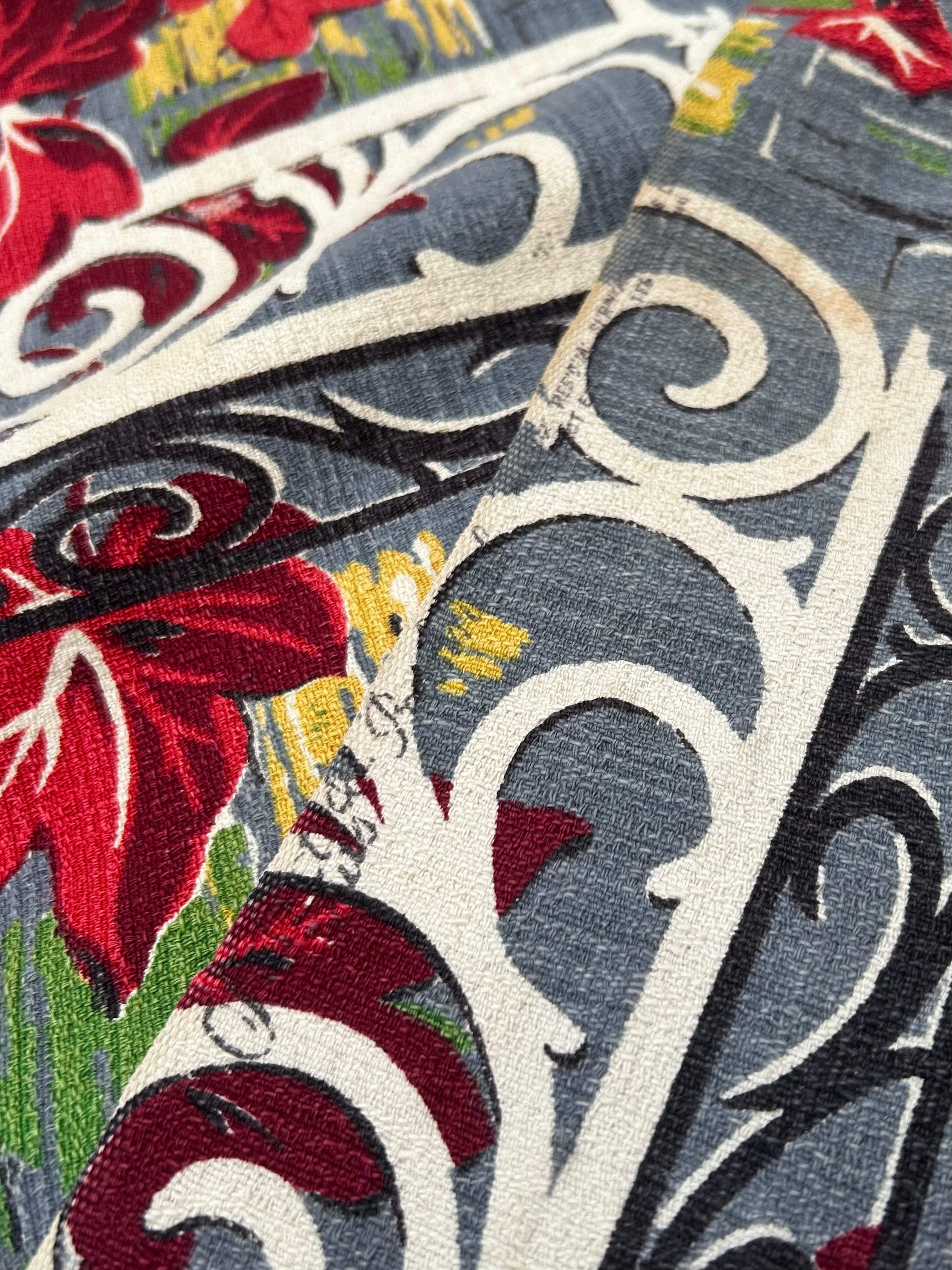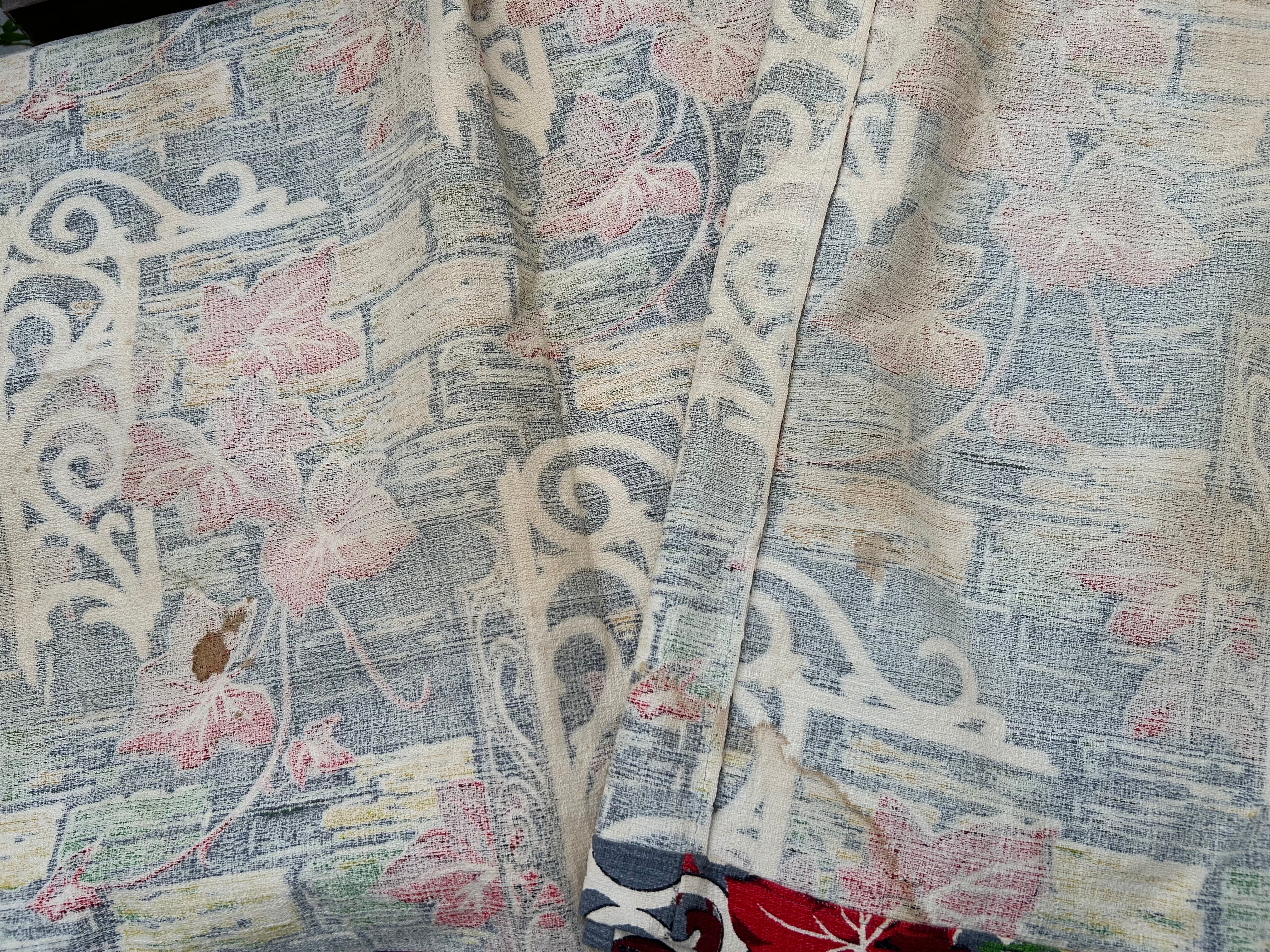 1950年代、リーフ柄ビンテージファブリック。 カーテンや椅子の張り替え、洋服などのリメイクにオススメ。 サイズ 740×2500 生地の擦れや小さな穴、裏面にシミなど多少ございます。