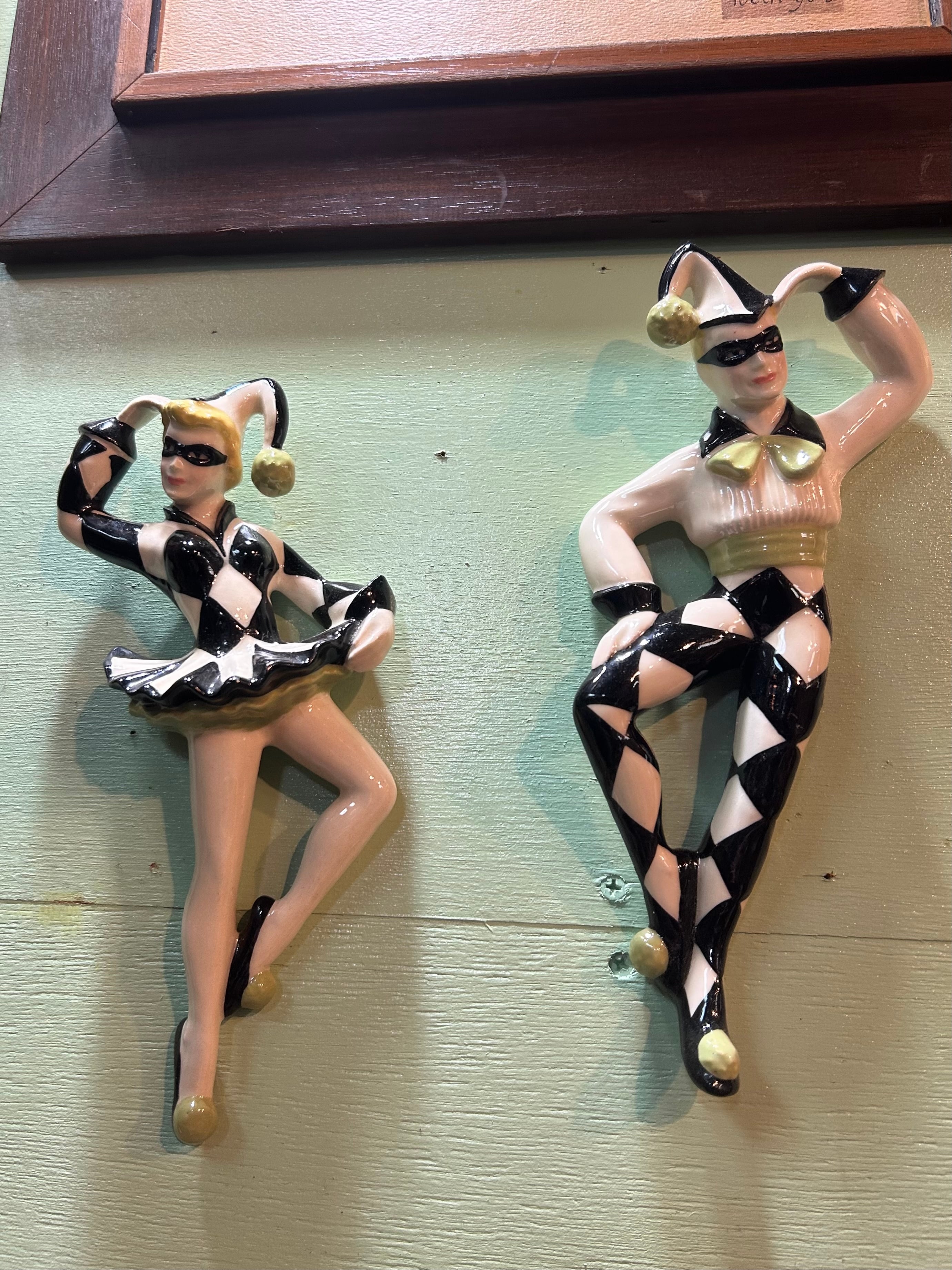 1950年代、CERAMIC ARTS STUDIOのハーレクインビンテージ壁飾りペア。 ダメージなど無くキレイな状態です。
