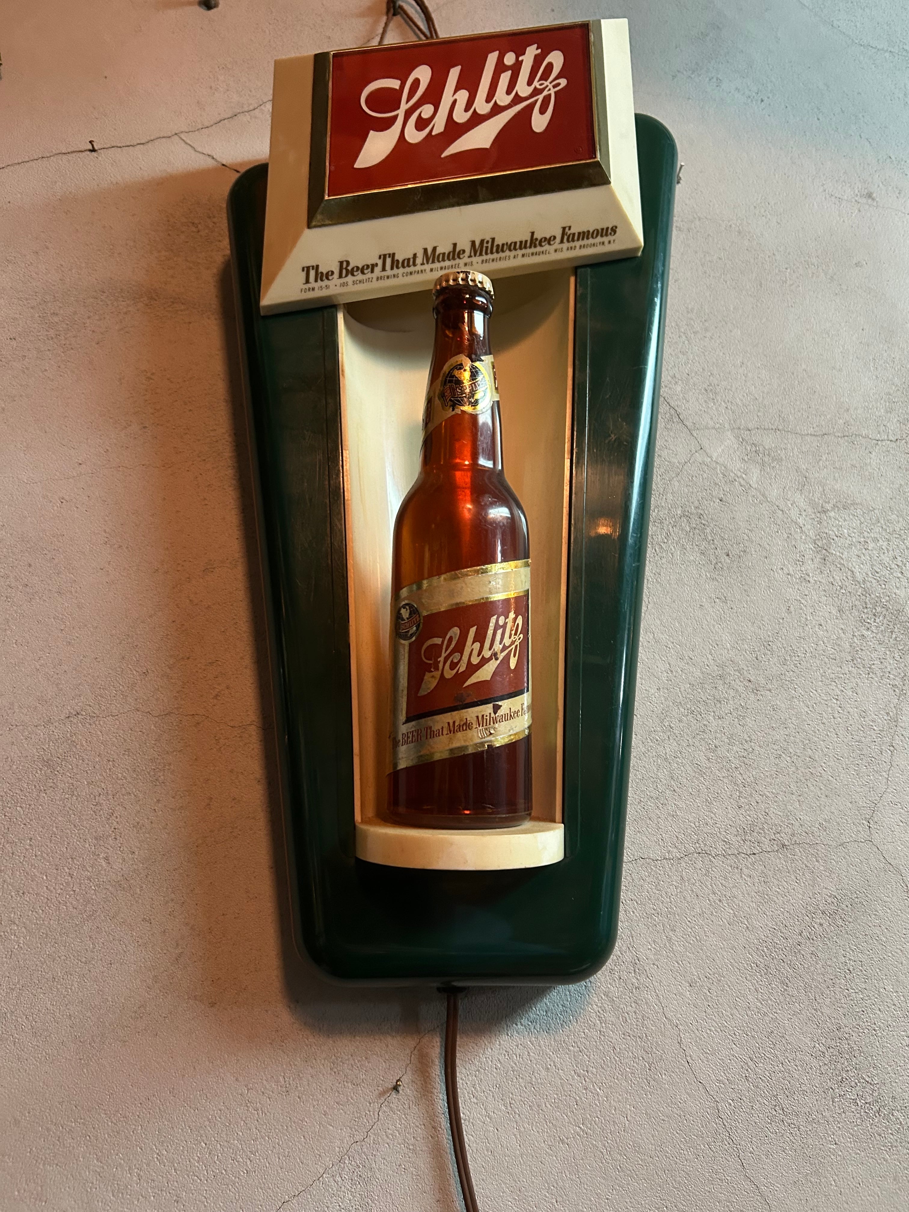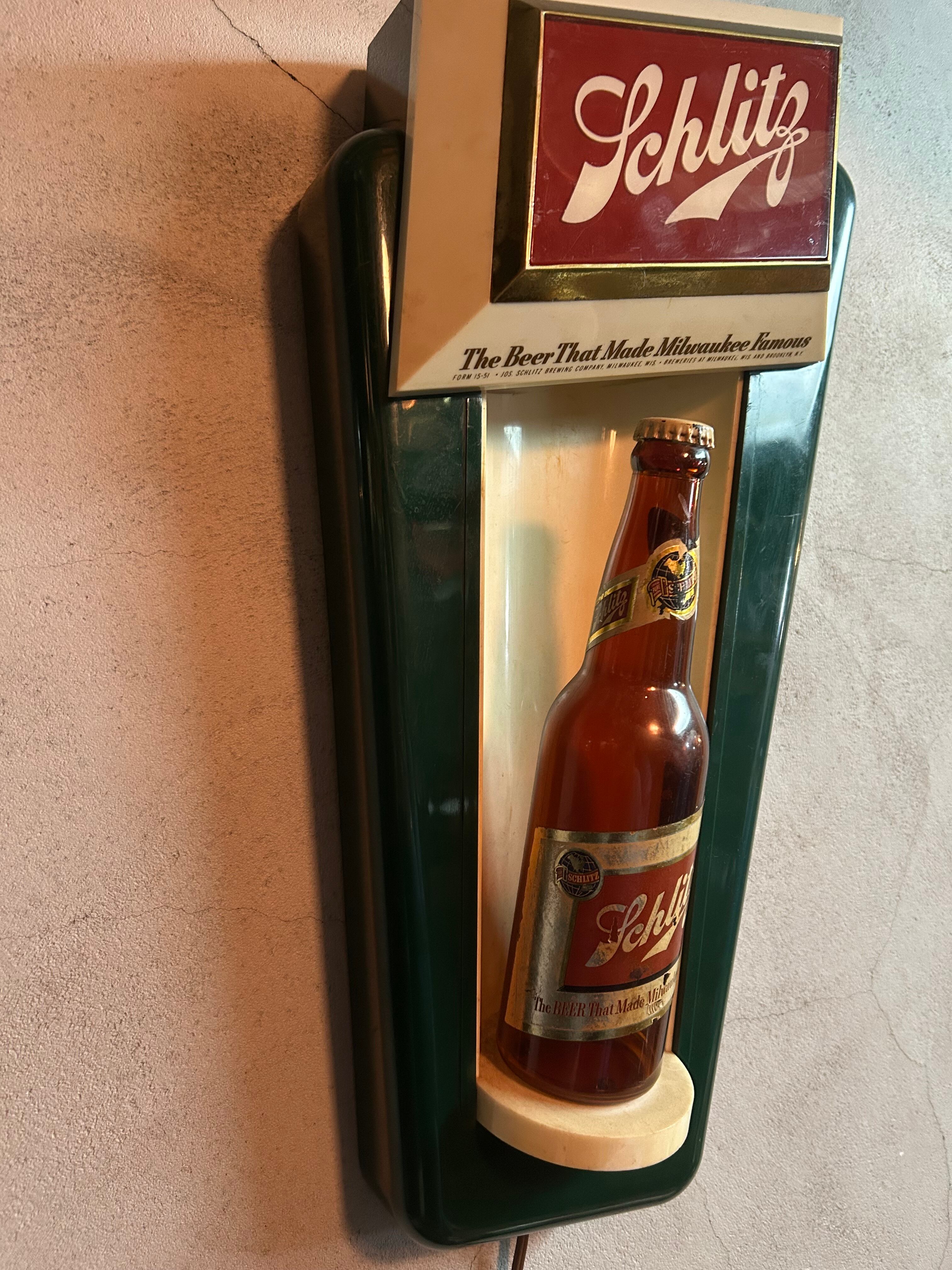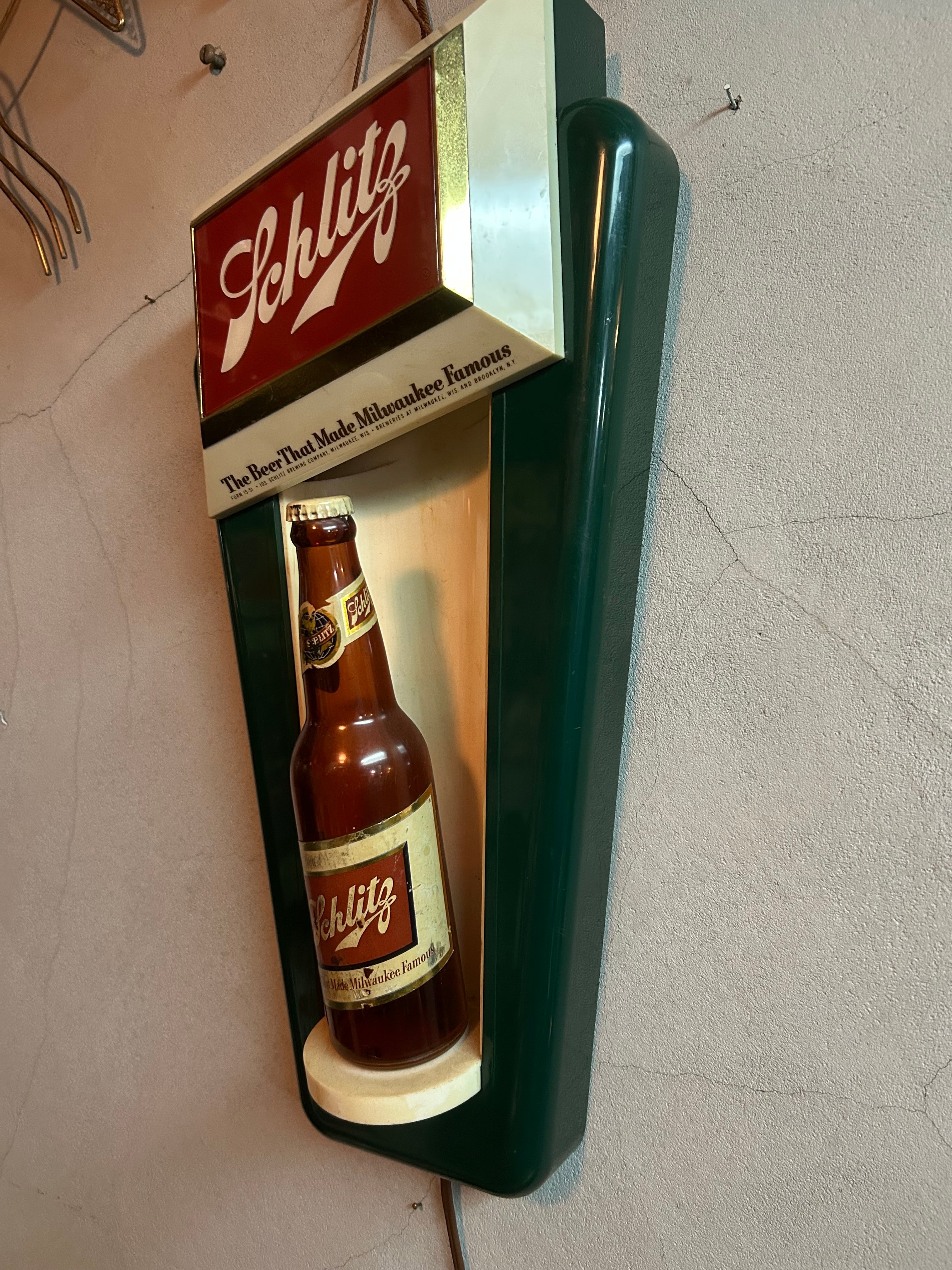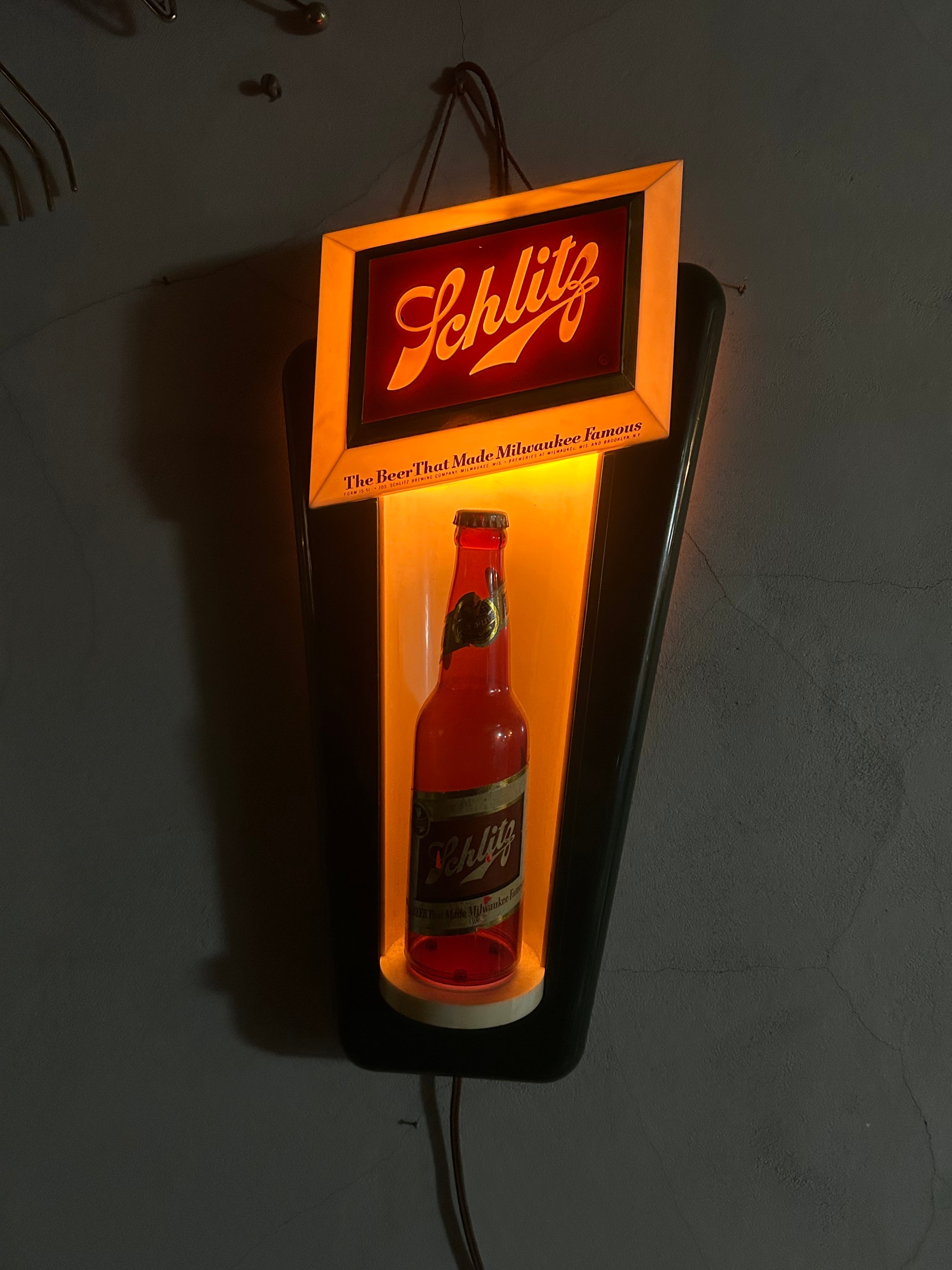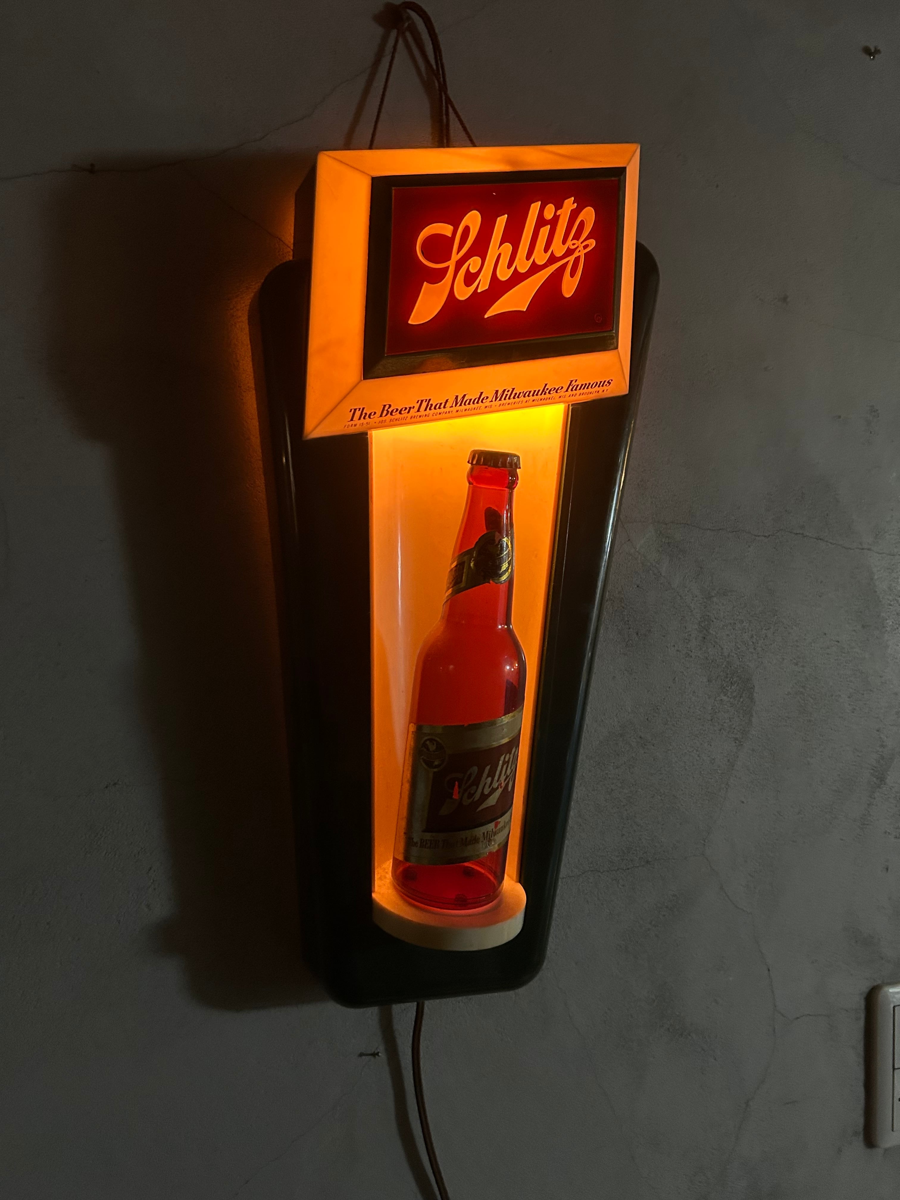 1950年代、SCHLITZ (シュリッツ)BEERのアドバタイジングサイン。 コンセプト&スウィッチ部分など全てオリジナルパーツ。 ボトル部分の細かな傷はありますが大きなダメージも無くキレイなオリジナルコンディションです。