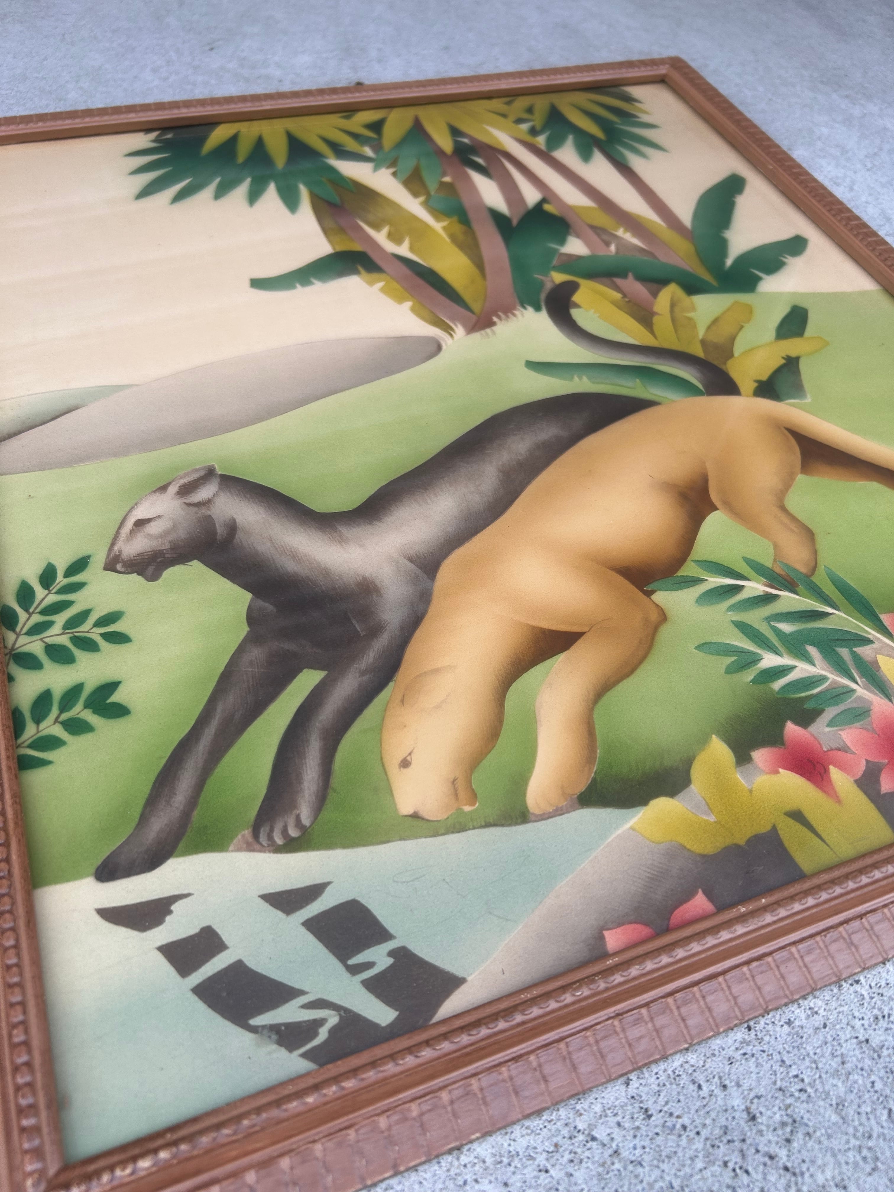 1949年、Bernard Picture Companyのエアーブラシペイントのビンテージパンサー。 パンサー物は希少性が高く人気のコレクターアイテム。 ハワイアン物とも相性がいいです。 フレームなど全てオリジナル。 裏紙はキレイに張り替え済みです。 サイズ 450×500