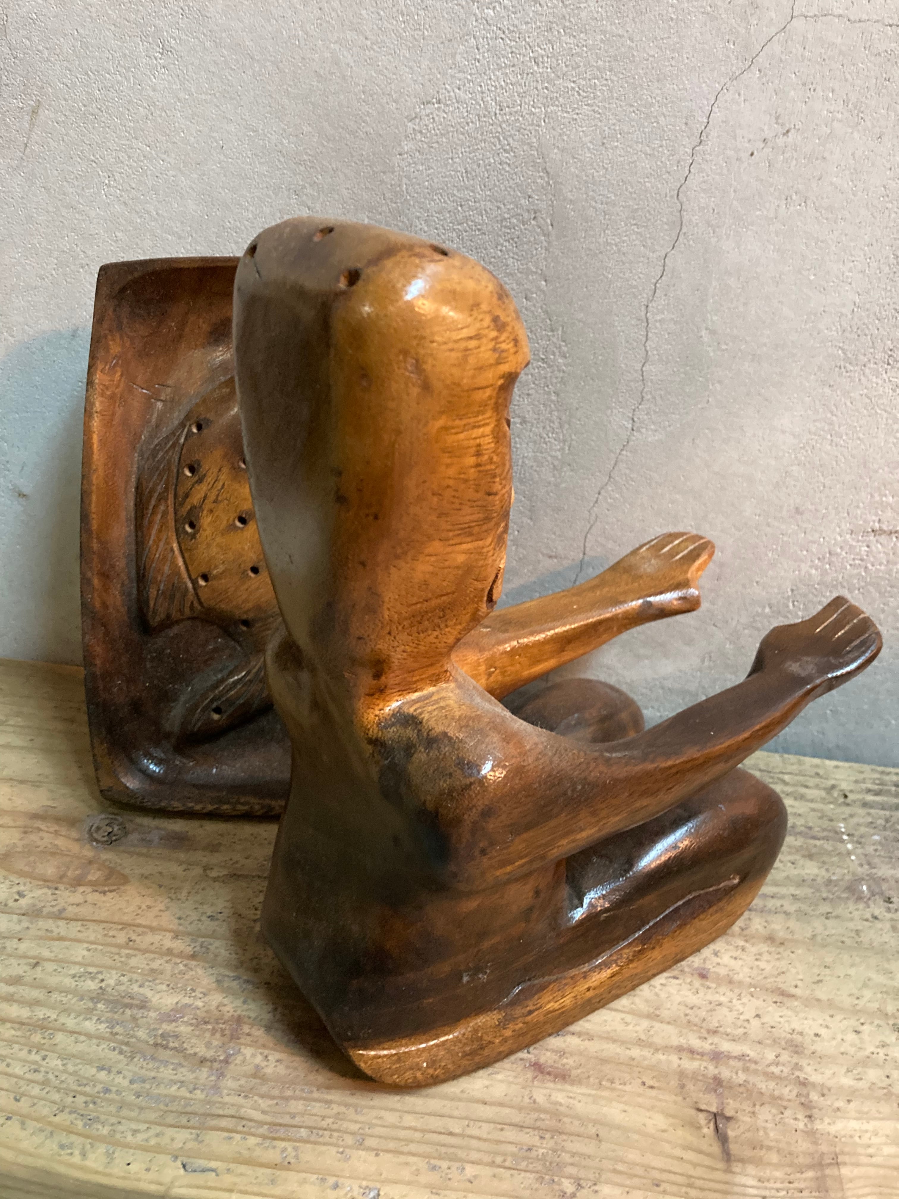 1960〜1970年代、ハワイアンティキのウッドトレイ。 モンキーポッドを使用した手彫り物。 サイズ ティキ H235mm×W105mm×D205mm トレイ H154mm×W207mm×D31mm