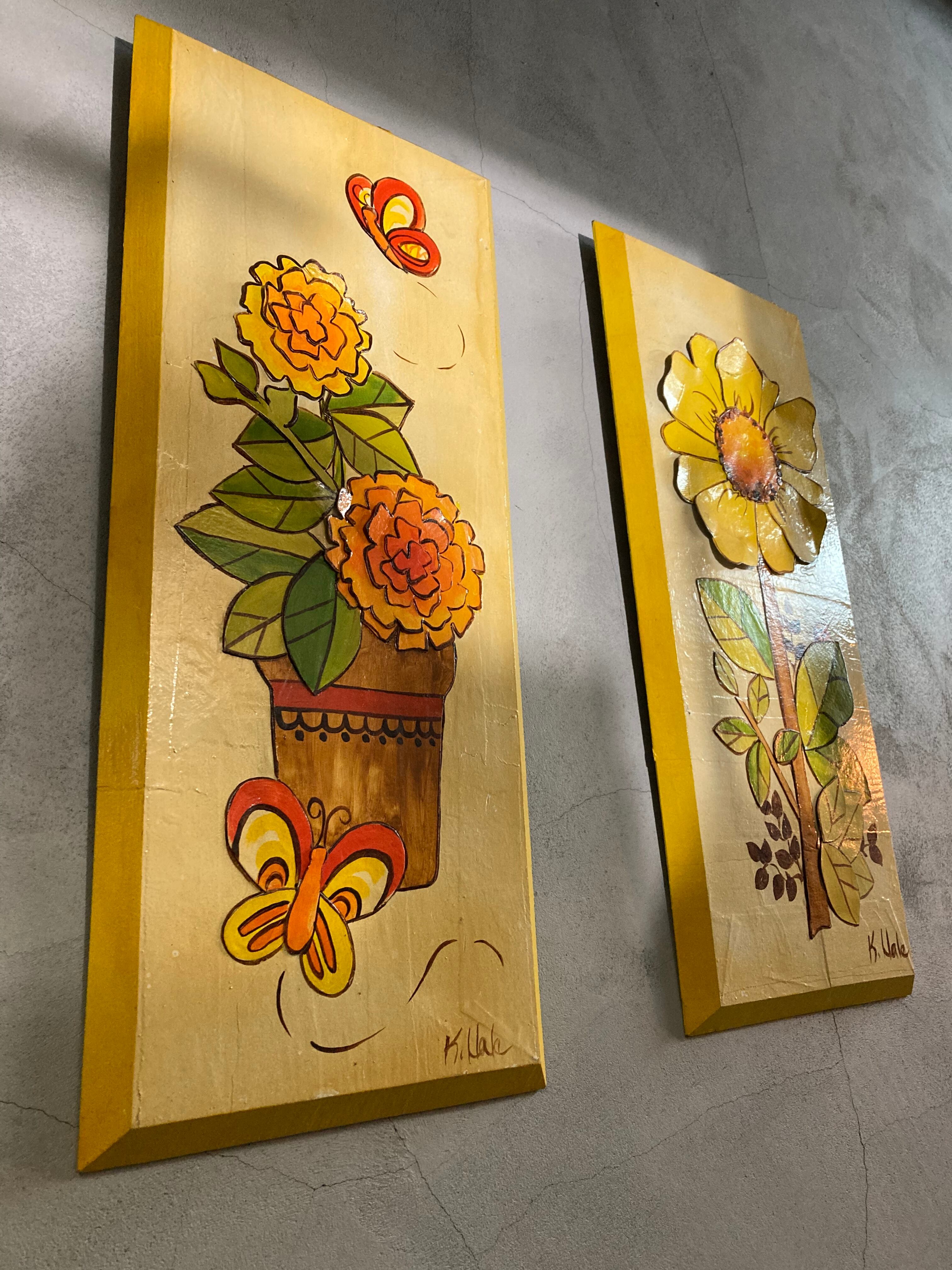 1960年代、フラワーモチーフのビンテージ壁飾りセット。 サイズ H640mm×W275mm
