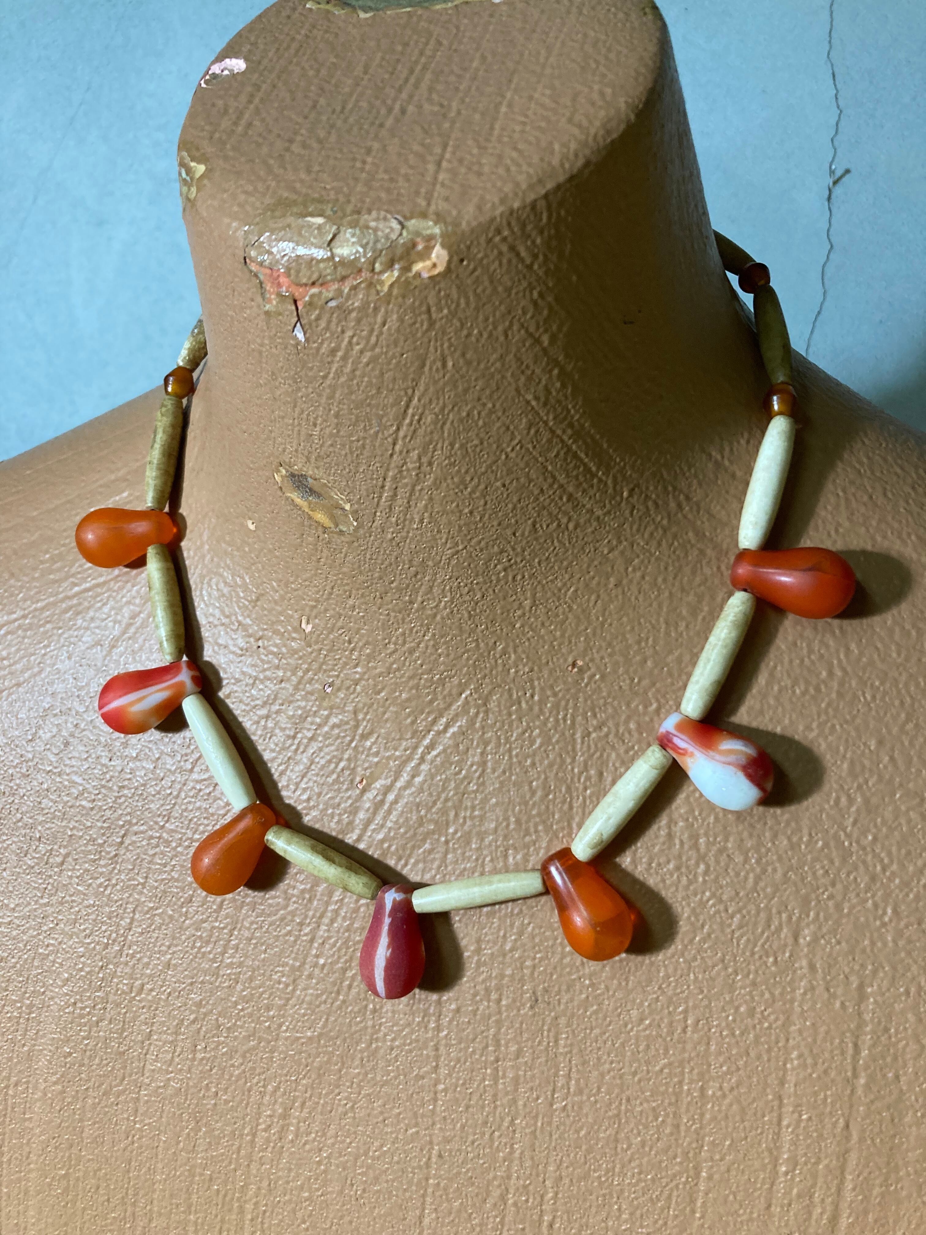 100年前のガラスビーズ7個と、ボーンビーズを組み合わせたネイティブなネックレス。
