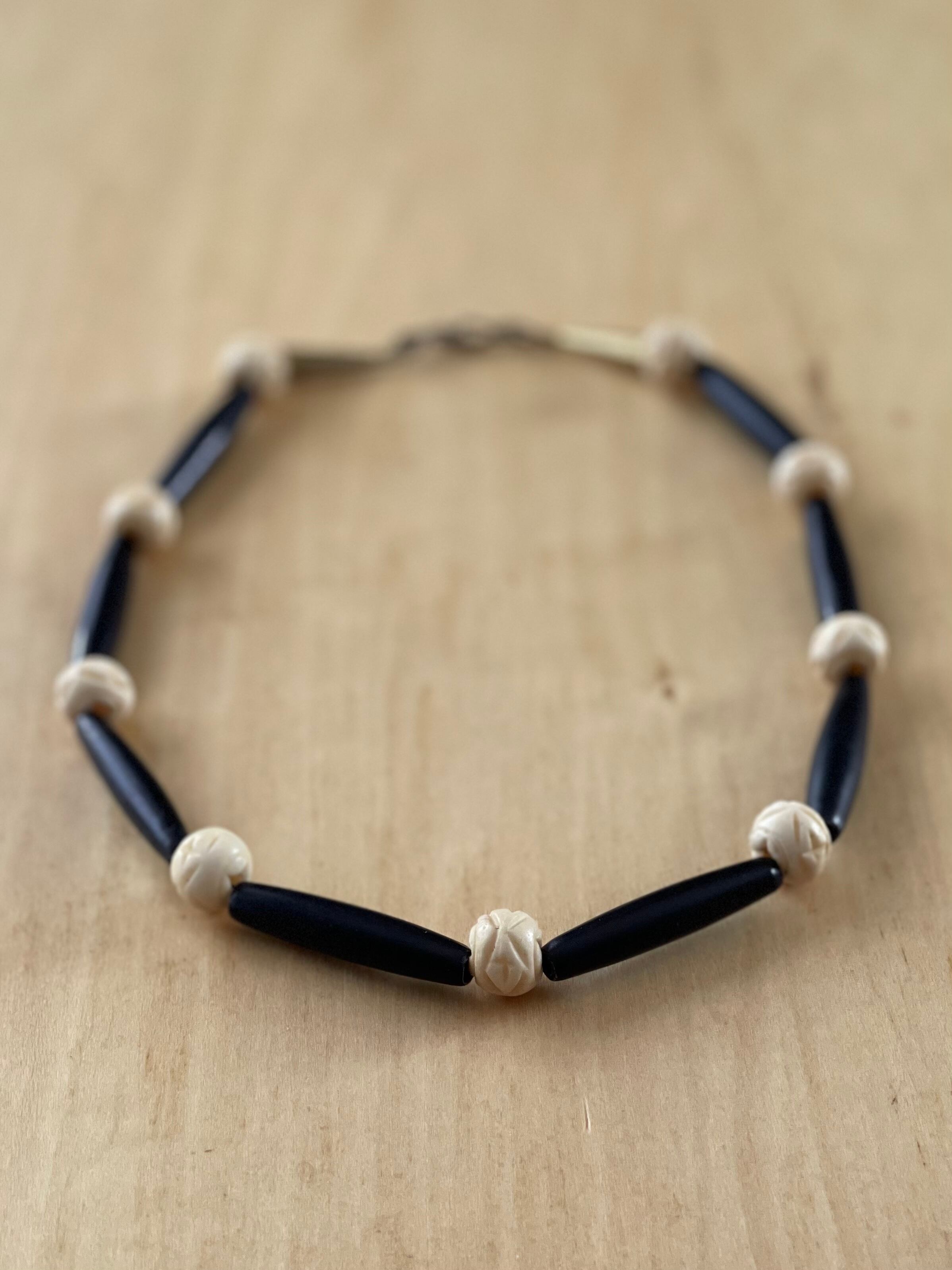 ボーンビーズのみで組み合わせたネイティブなネックレス。重ね付けした際、一番上に付けれる長さです。