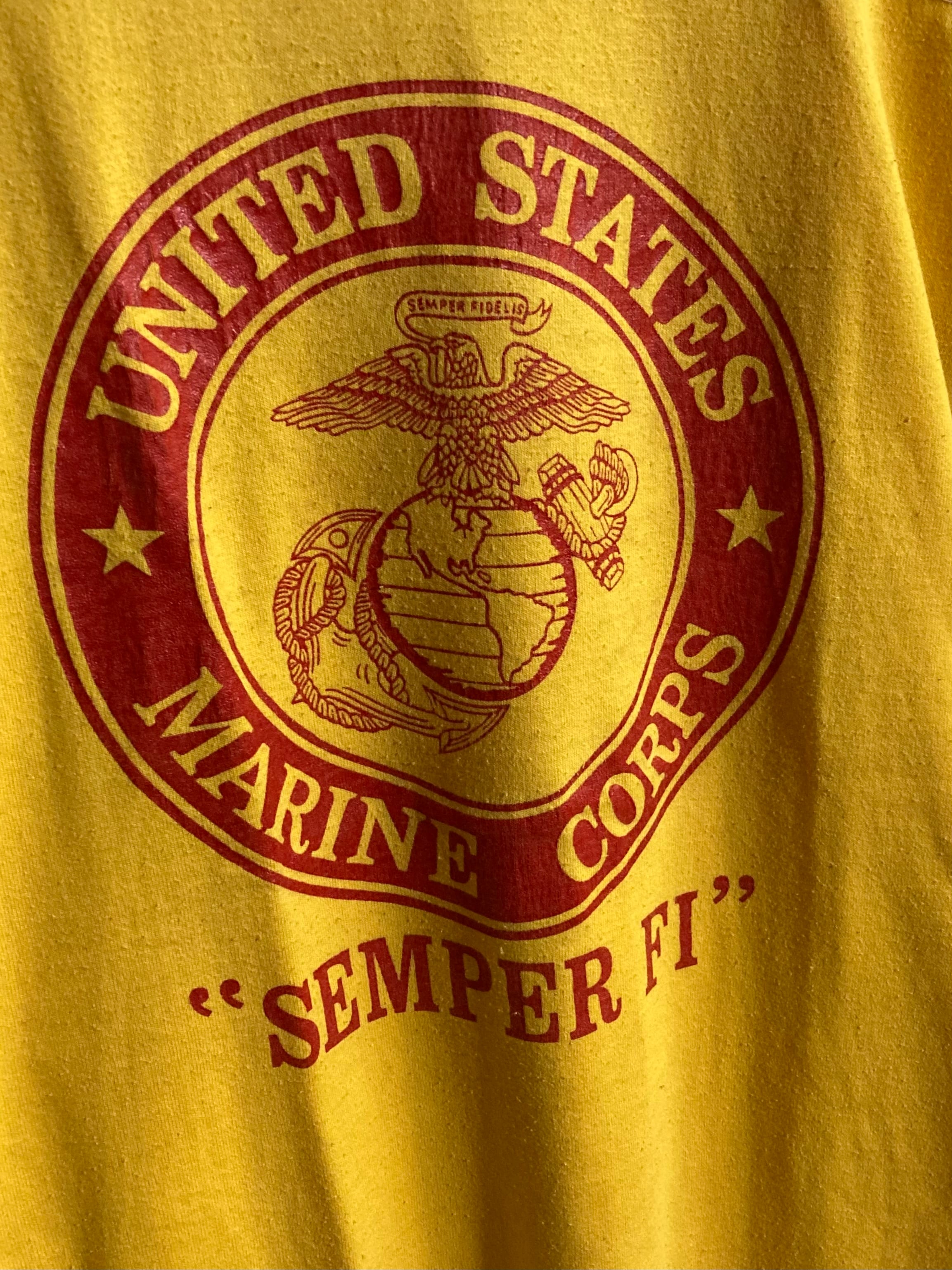 1980年代、SOFFE製のUSMCフットボールtシャツ。 サイズ表記 S 着丈 70 肩幅 43 身幅 45