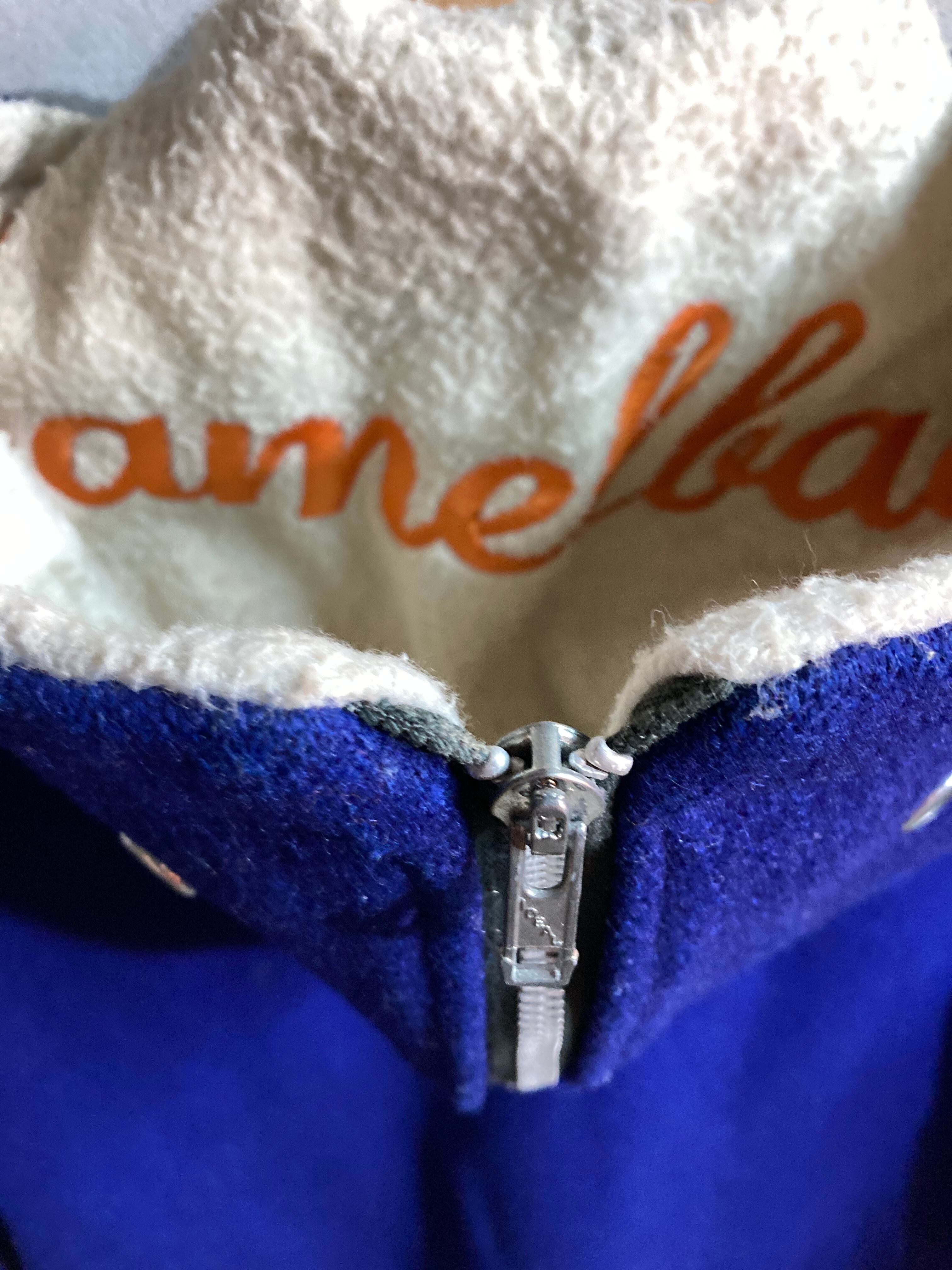1980年代、(Camelback)USA製のスタジャン。 サイズ(S相当) 着丈 54cm 肩幅 41cm 身幅 51cm 袖丈 57cm