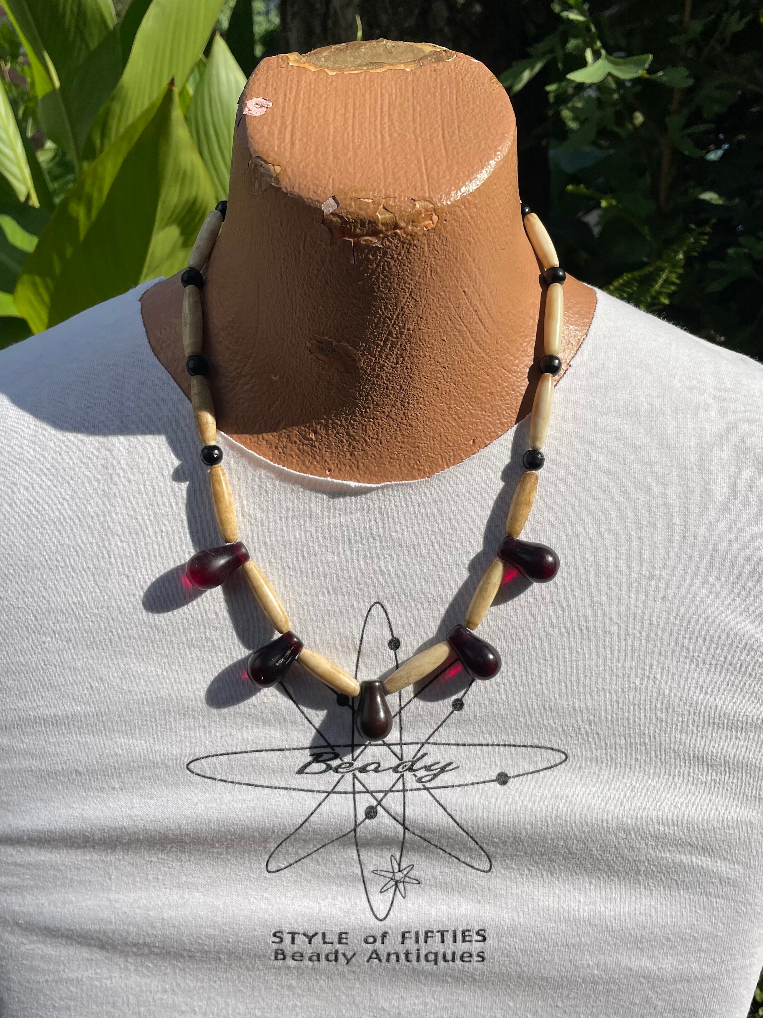 100年前のガラスビーズ5個に、アンティークボーンビーズを組み合わせたネイティブなネックレス。