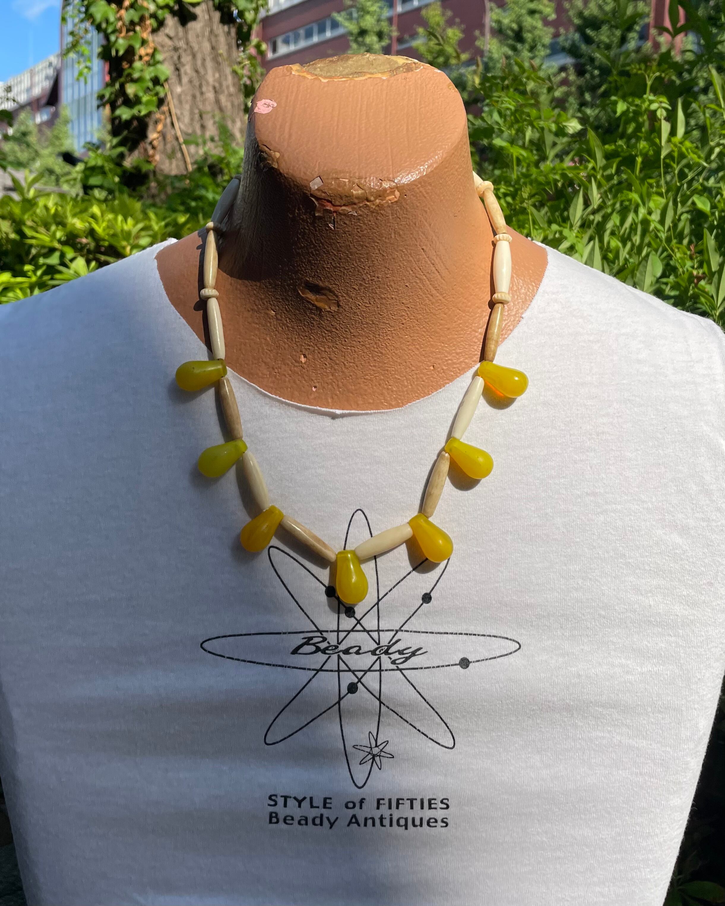 100年前のガラスビーズ7個に、ボーンビーズを組み合わせたネイティブなネックレス。