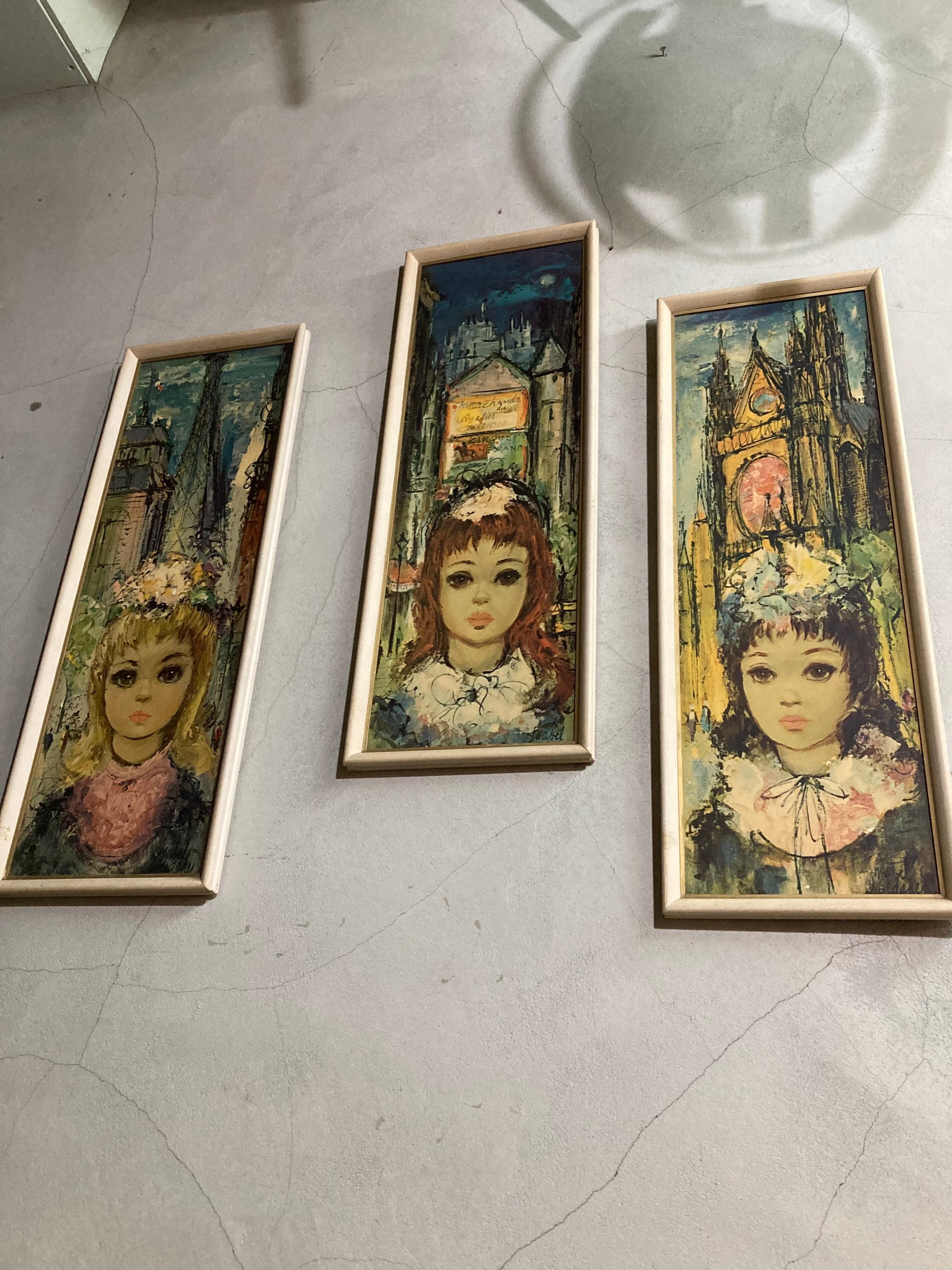1960年代、ビンテージのビッグアイズモチーフの壁飾り3ピースセット。 サイズ H 63cm W22.5cm D2.3cm