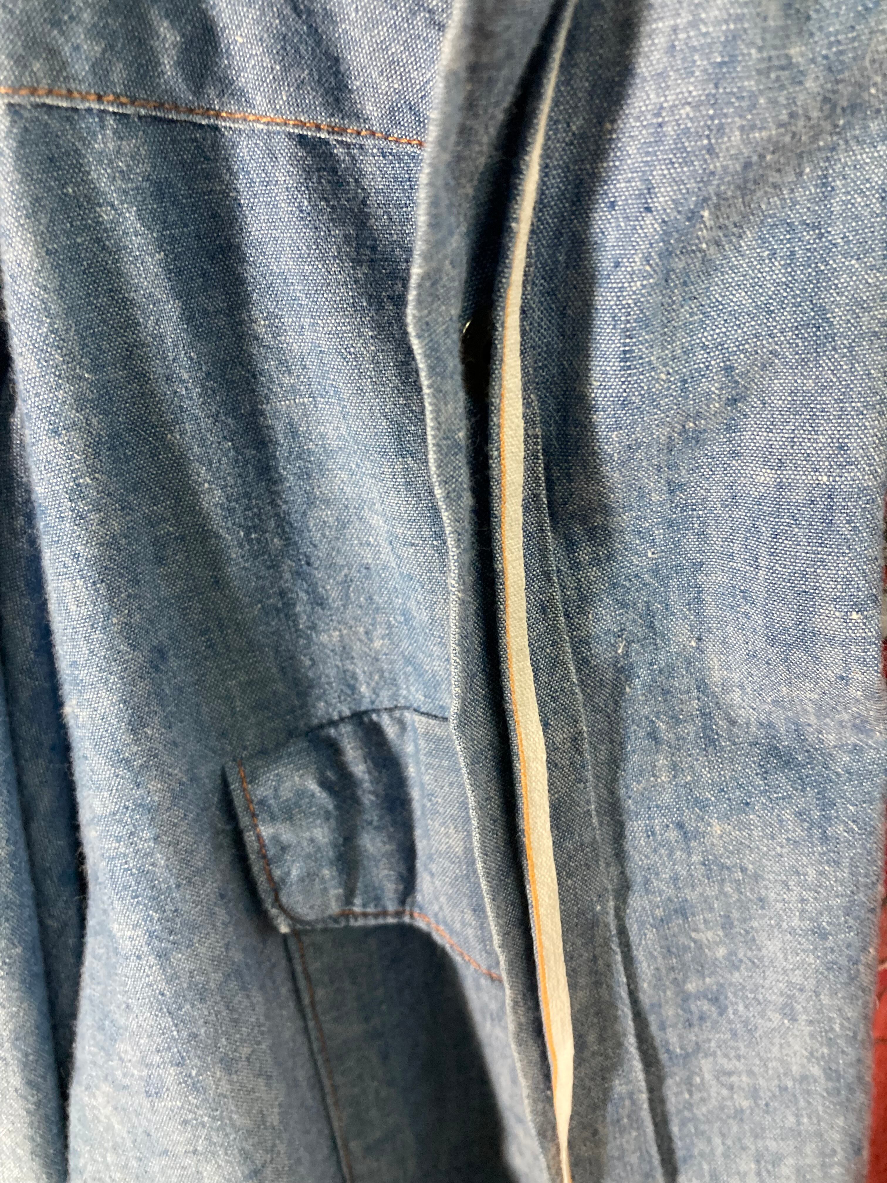 1970年代、JCPENNEY(BIGMAC)シャンブレーウエスタンシャツ。 COTTON 100% サイズ表記 17 1/2 着丈81cm 肩幅54cm 身幅65cm 袖丈64cm