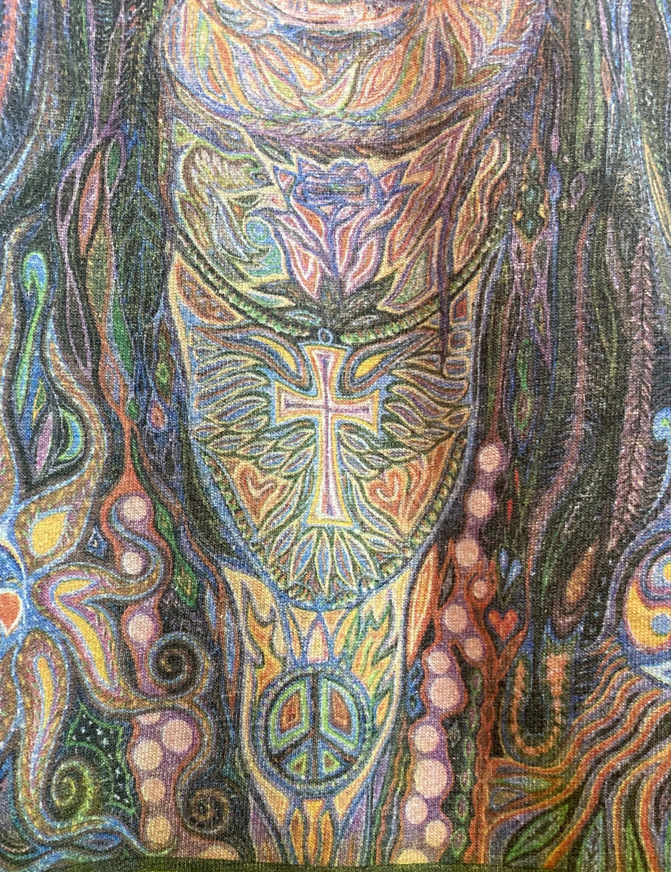 1990年代、(FRUIT OF THE LOOM)USA製のヒッピープリントTシャツ。 サイズ表記 L 着丈 75cm 肩幅 54cm 身幅 55cm
