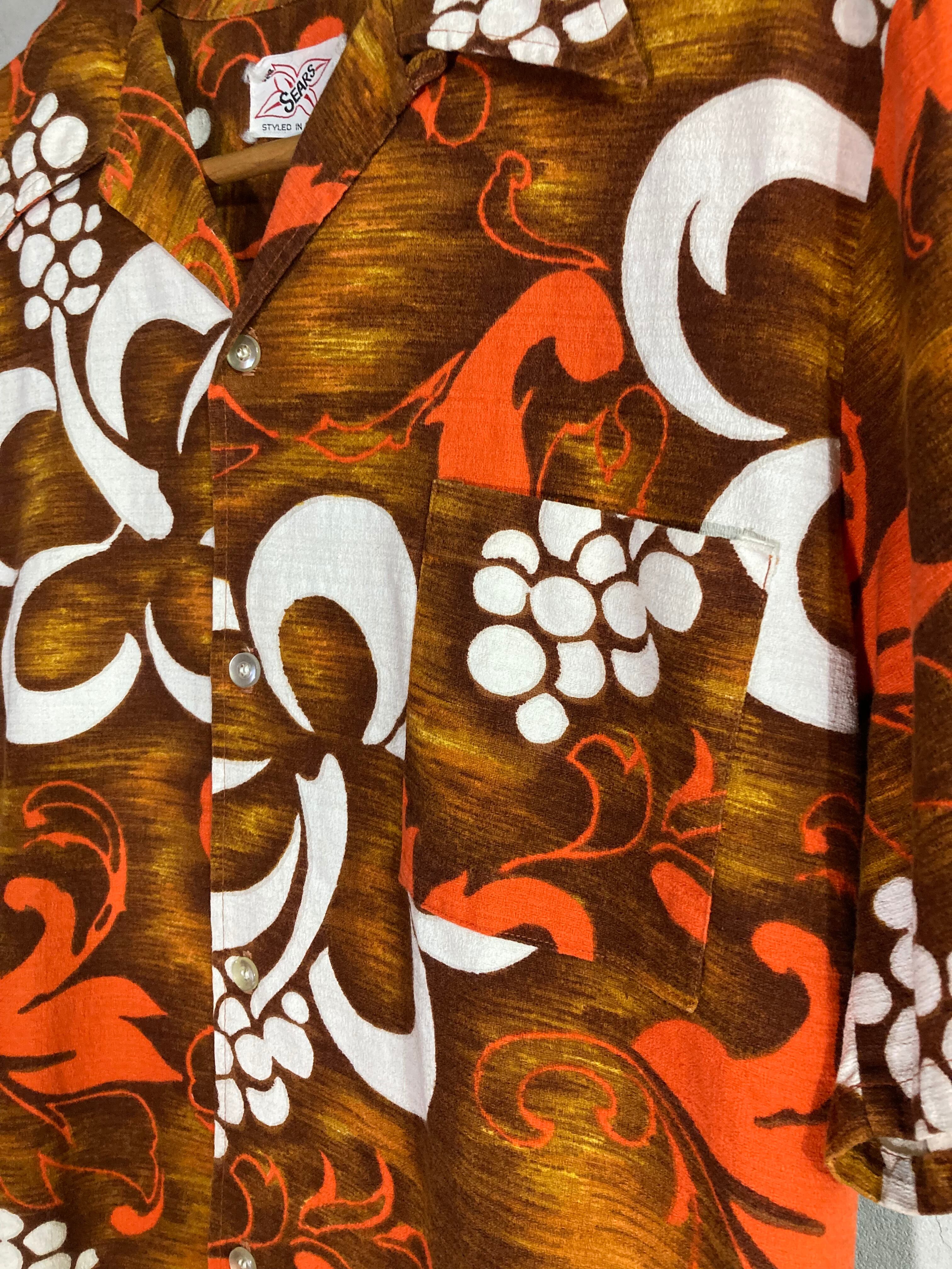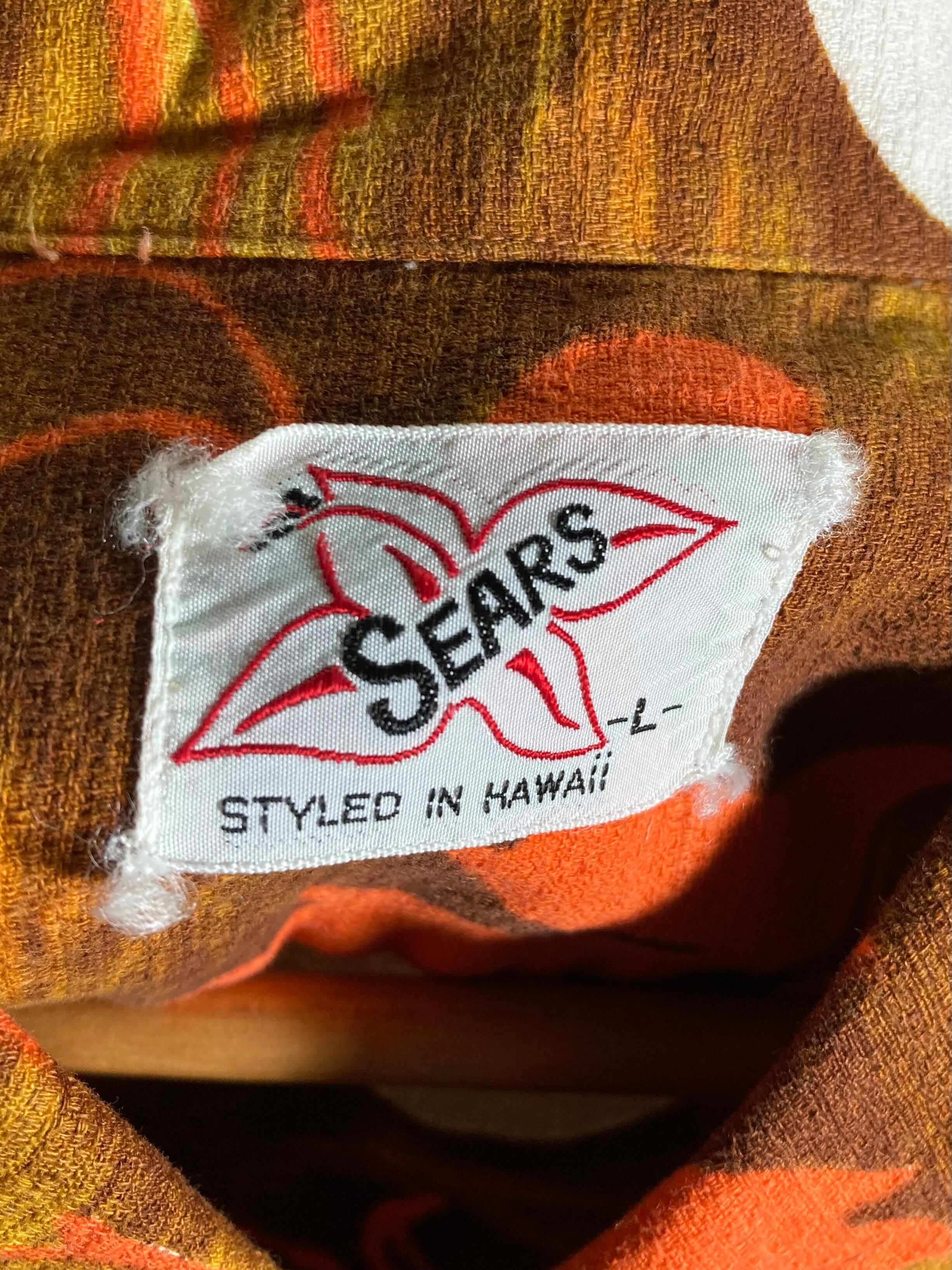 1960年代、(SEARS)ハワイアンのコットンアロハシャツ。 サイズ表記 L 着丈 71cm 肩幅 49cm 身幅 59cm